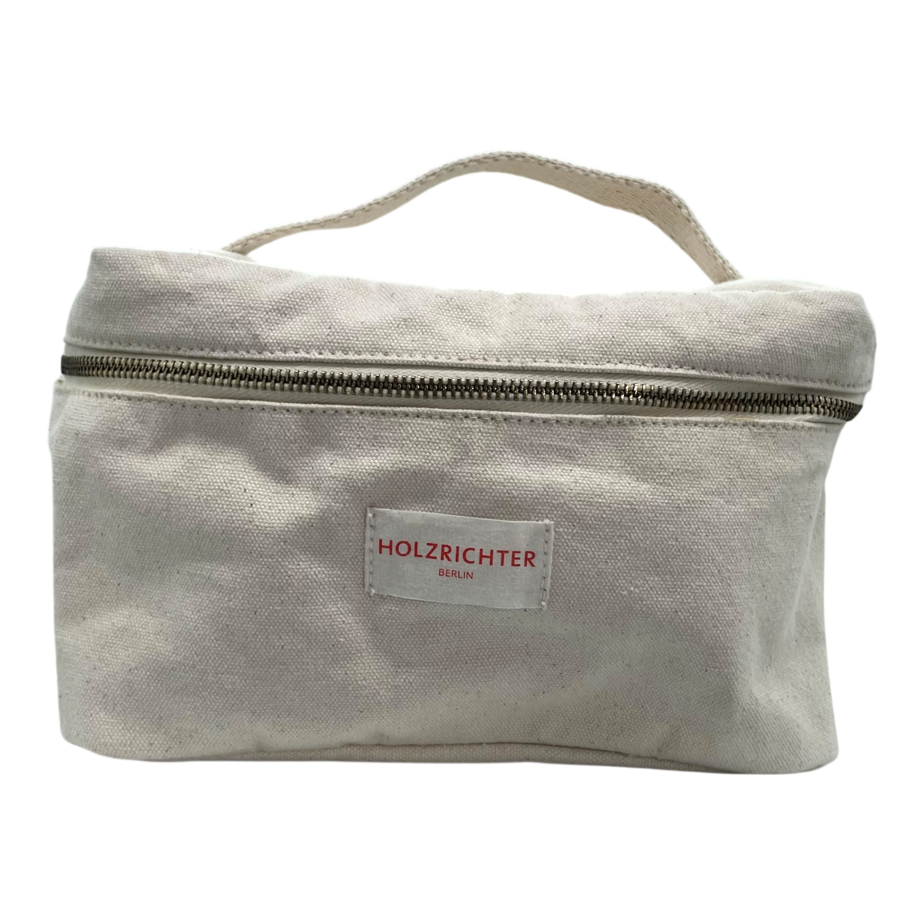 Holzrichter Berlin canvas toiletry bag is a compact and functional travel essential crafted from 100% certified organic cotton. Thanks to its dense weave, it offers a natural aesthetic and a pleasant tactile feel. Completely free from synthetic additives – it is fully vegan, water-repellent, and washable. With a sturdy zipper and practical handle, it’s ideal for toiletries, cosmetics, or small travel items, whether at home or on the go.