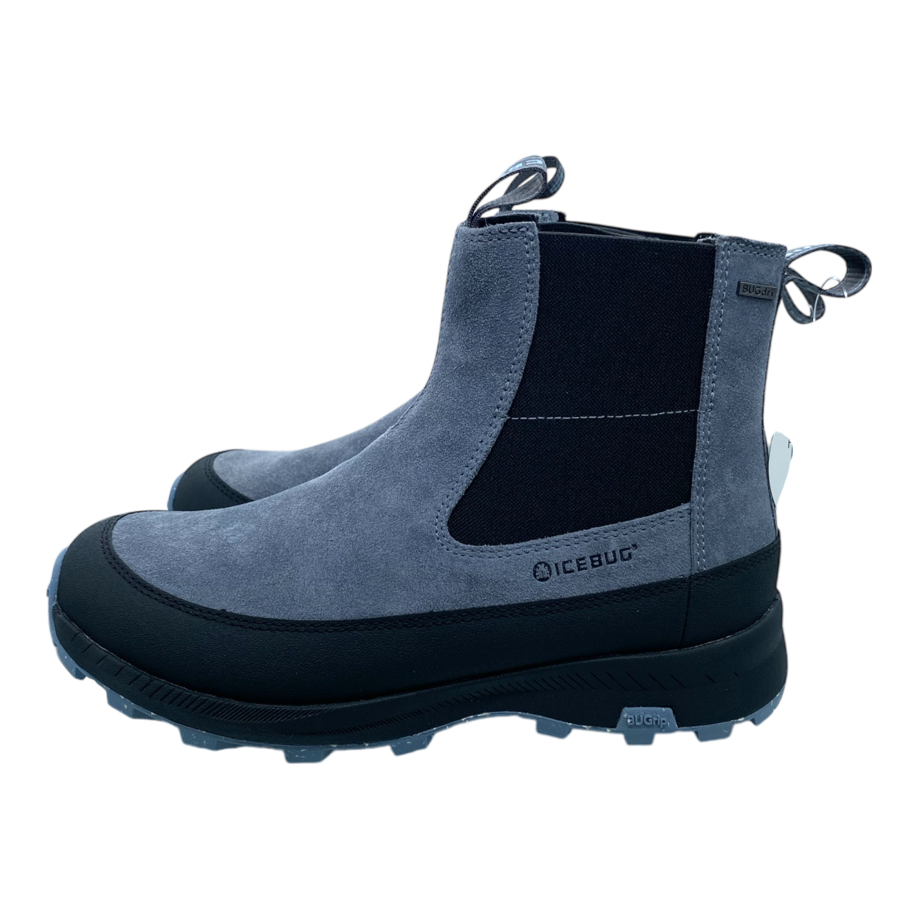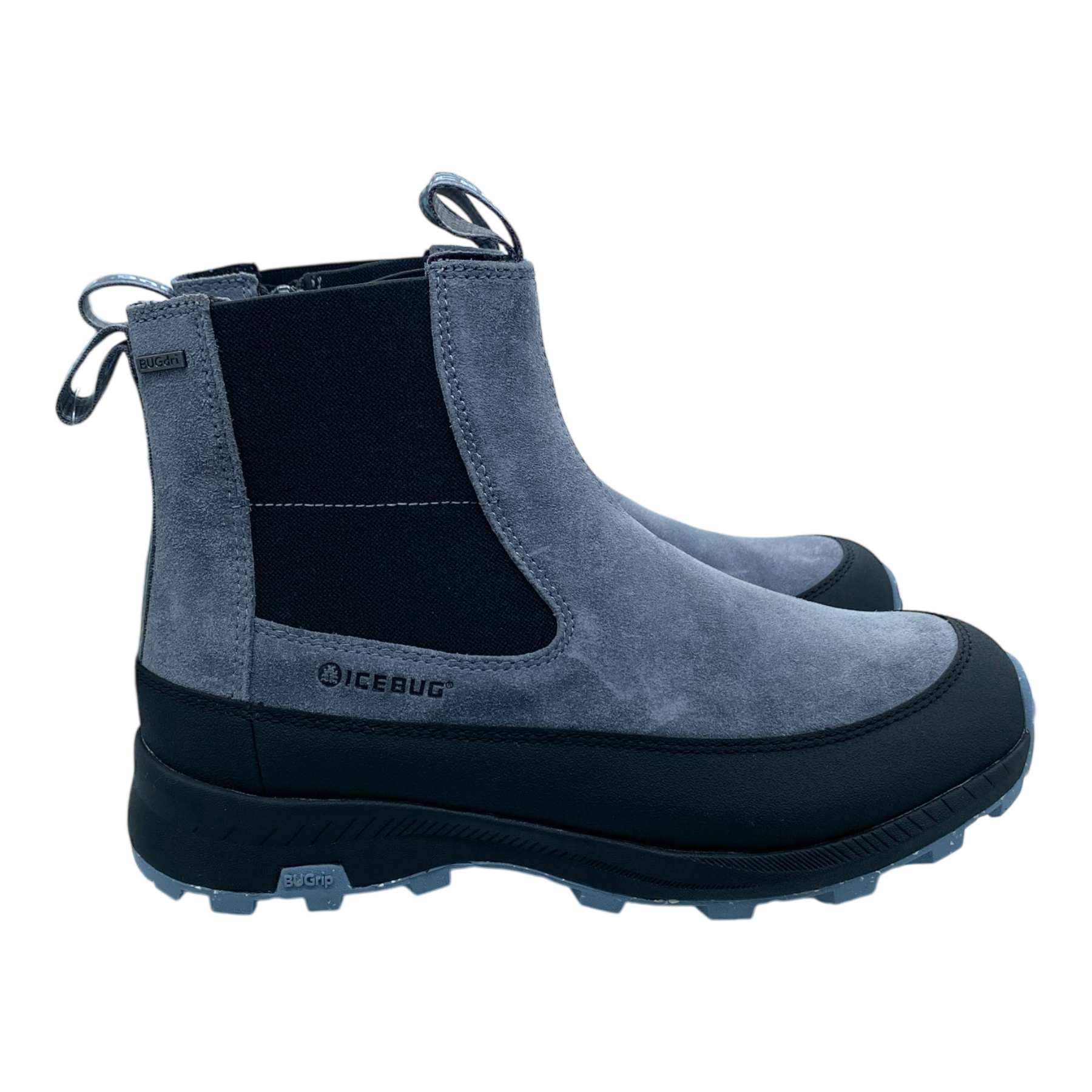Icebug Boda W BUGrip – warm and comfortable winter boots for active everyday use. Waterproof BUGdri™ membrane keeps feet dry, while soft fleece and Primaloft® Bio lining provide warmth. Easy on/off with side zipper and elastic panels. Lightweight EVA midsole with 20% BLOOM® algae foam ensures cushioning, and BUGrip® rubber outsole with carbide studs offers excellent traction on snow and ice. Wide fit for all-day comfort.