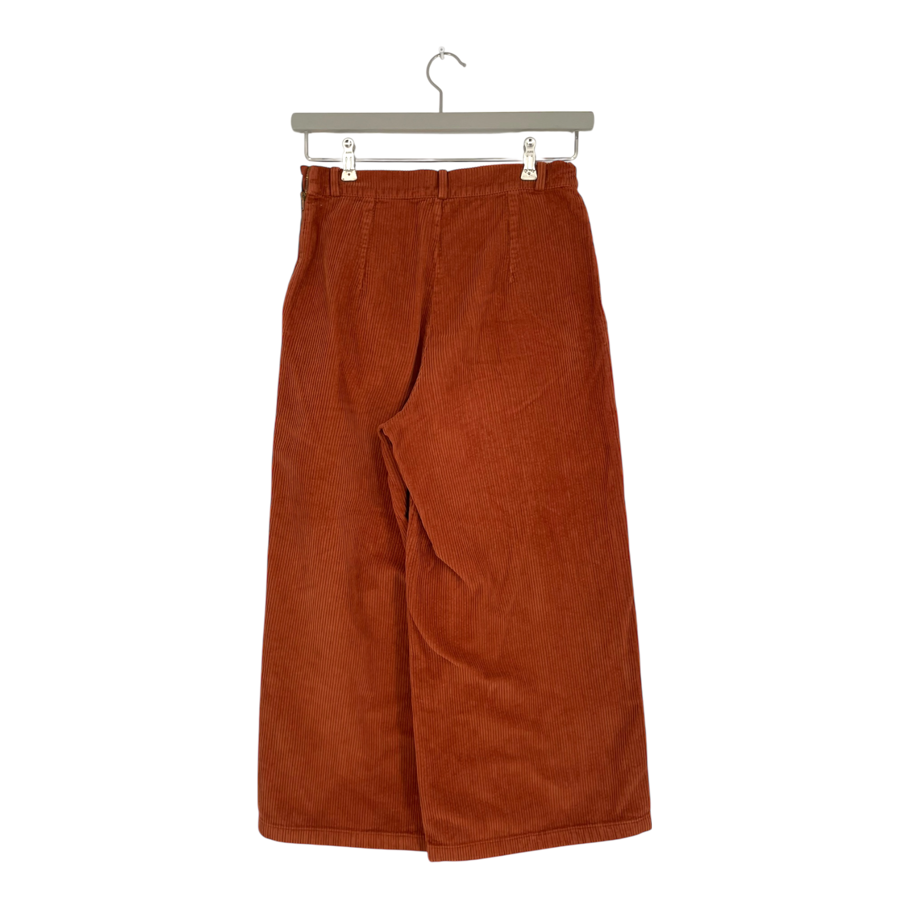 Kaiko's corduroy culottes pants with belt loops and front pockets. Zipper and button closure on the side for ease of dressing.
