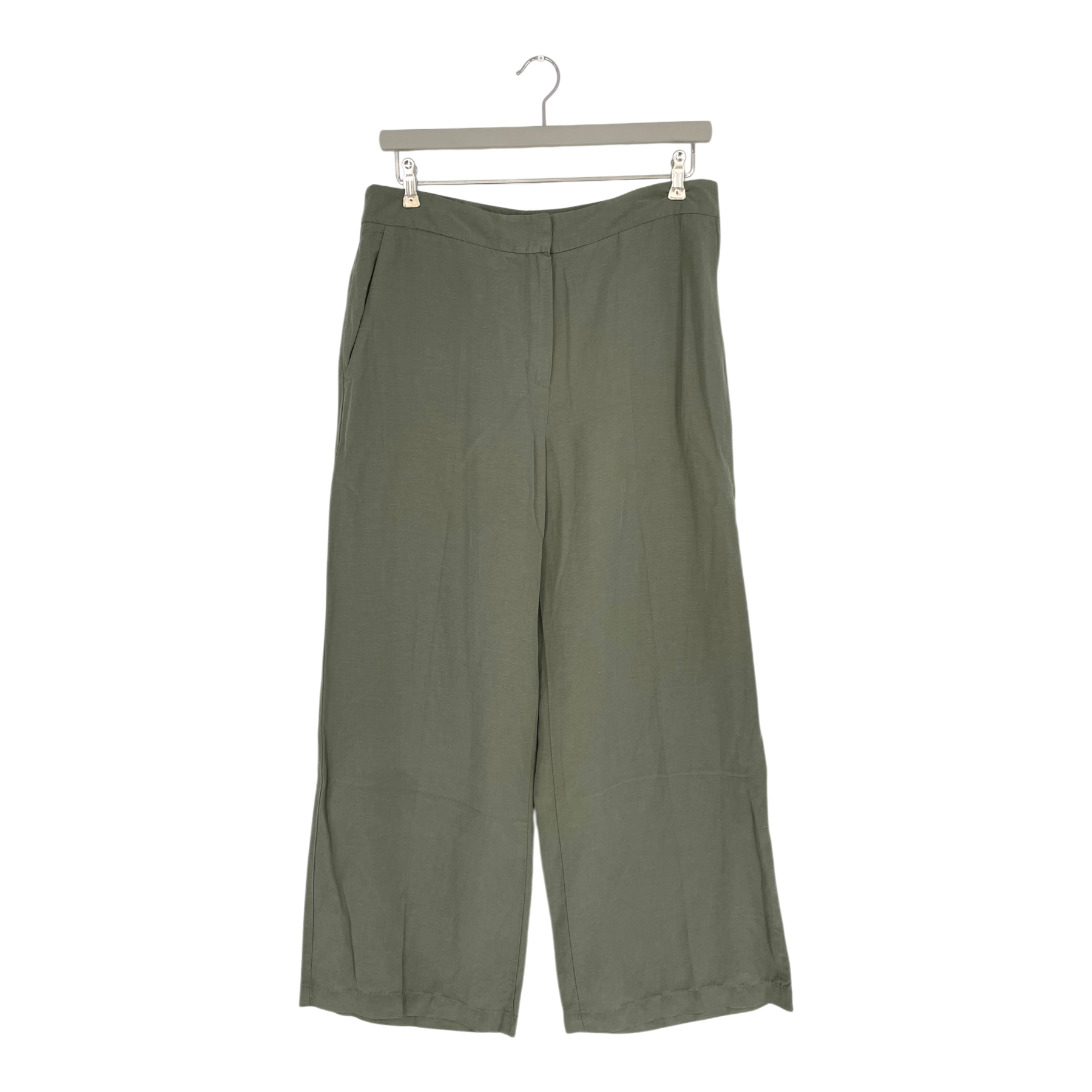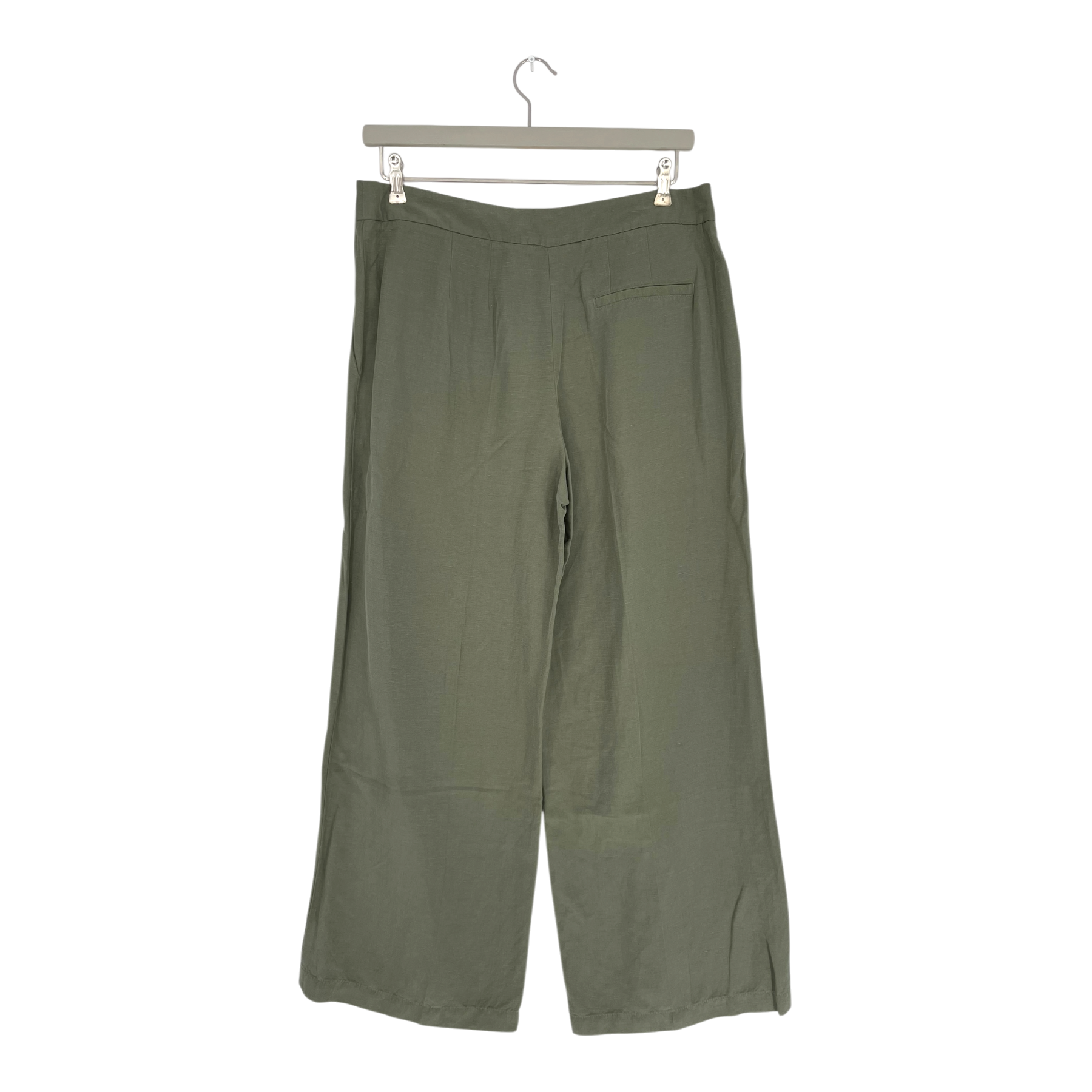 Lanius wide leg pants in olive green with zip closure and side pockets. High-waisted design with flowing silhouette.