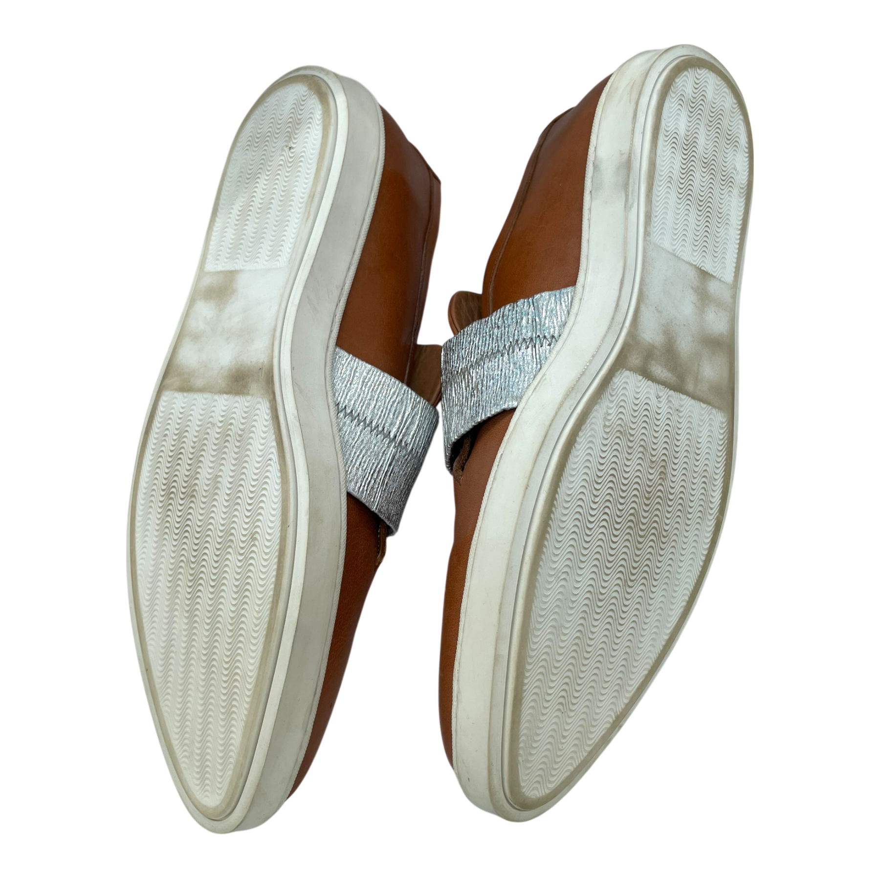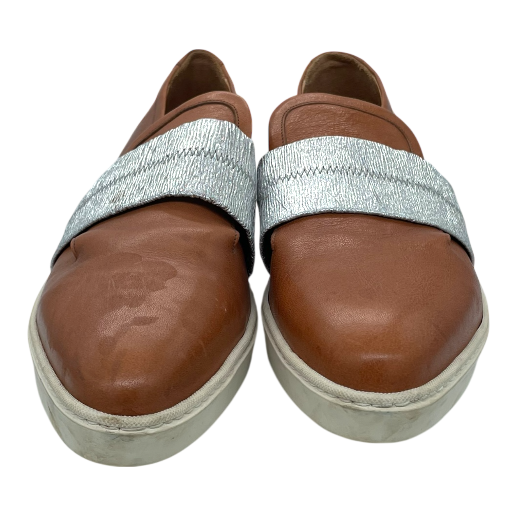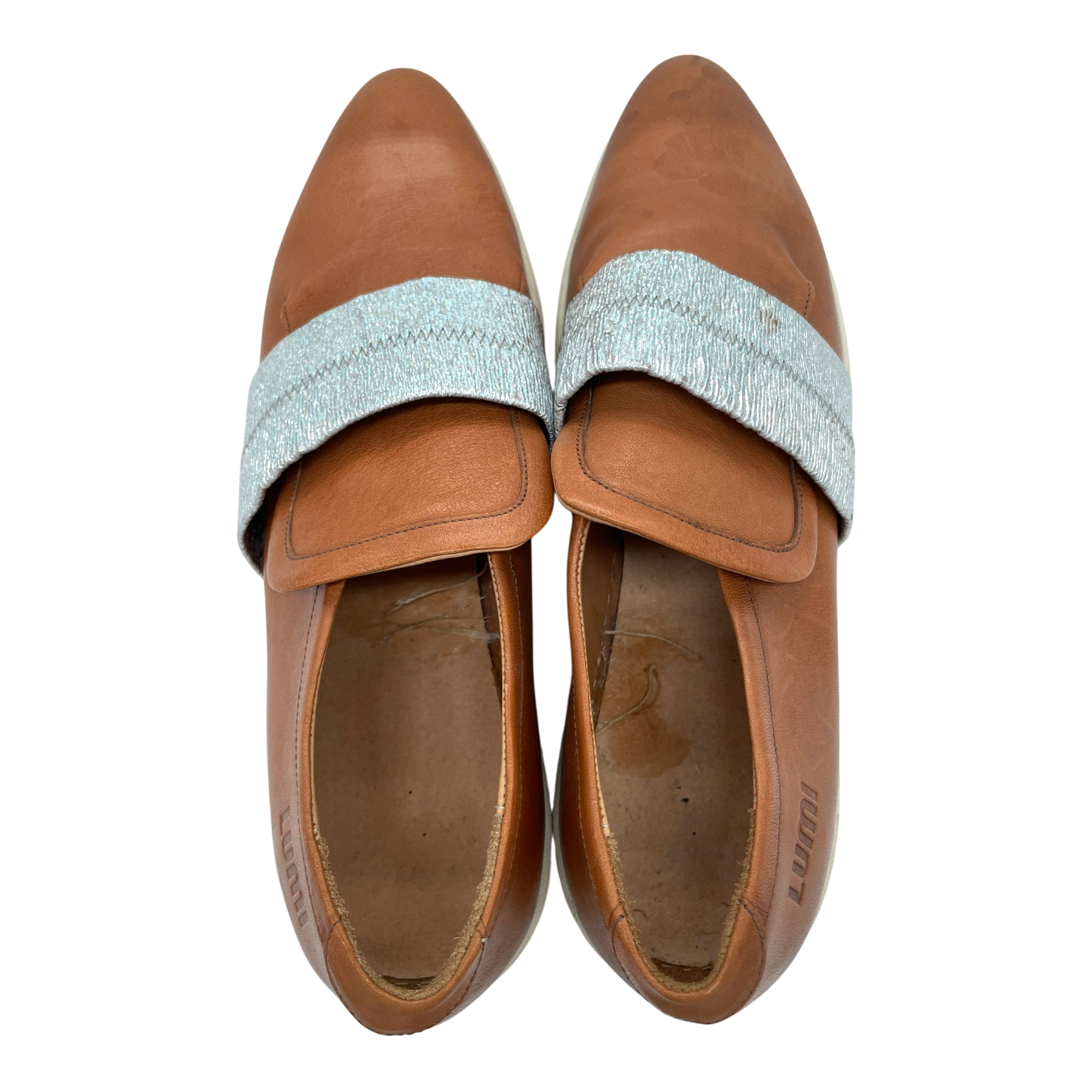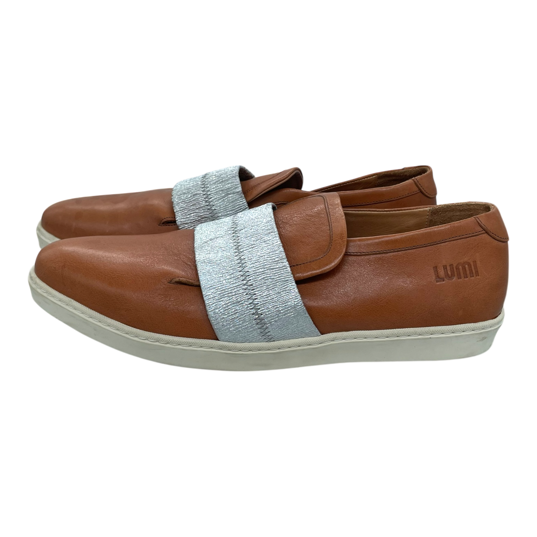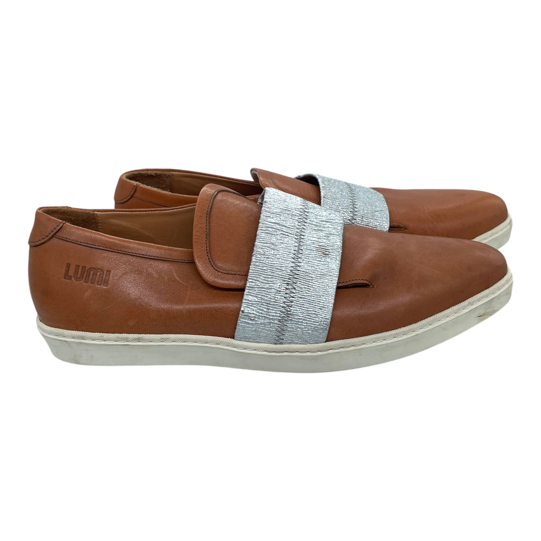 LUMI leather shoes in brown leather with silver detail, missing the insole.
