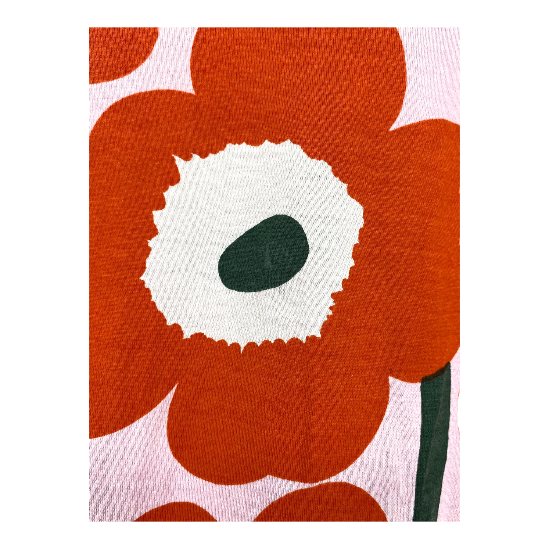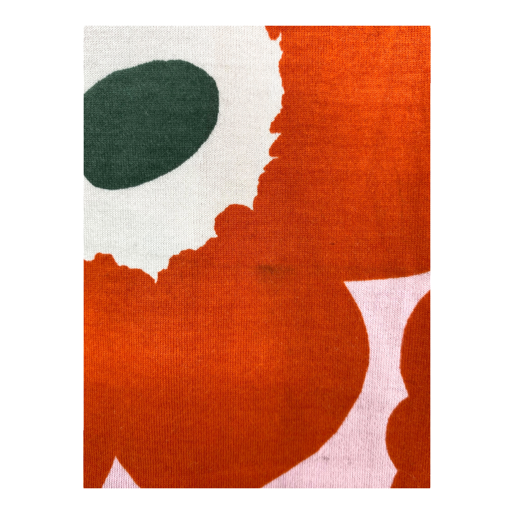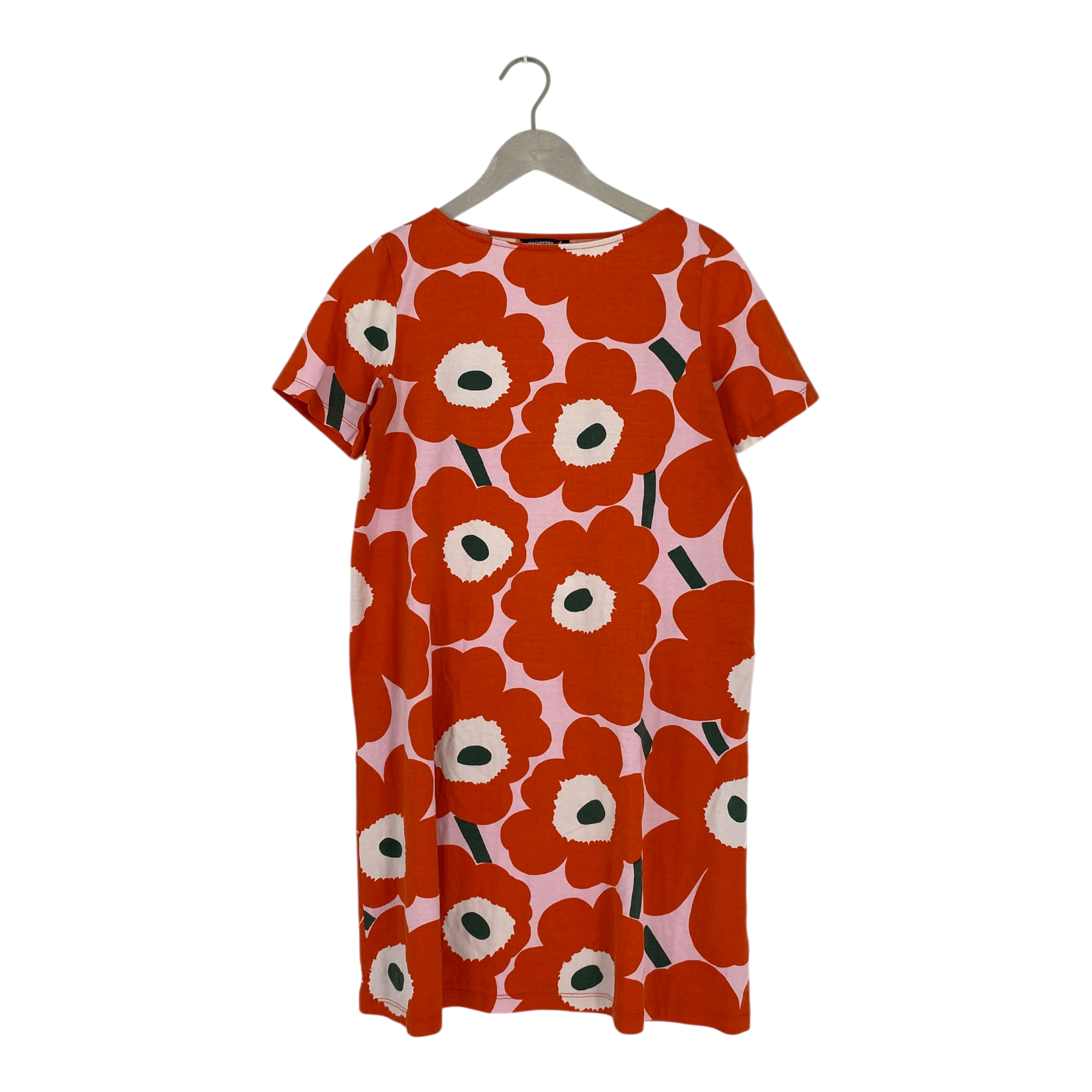 Marimekko Sitriini 2 in the Pieni Unikko print. The item is worn from the wash and has a few stains, as shown in the pictures.