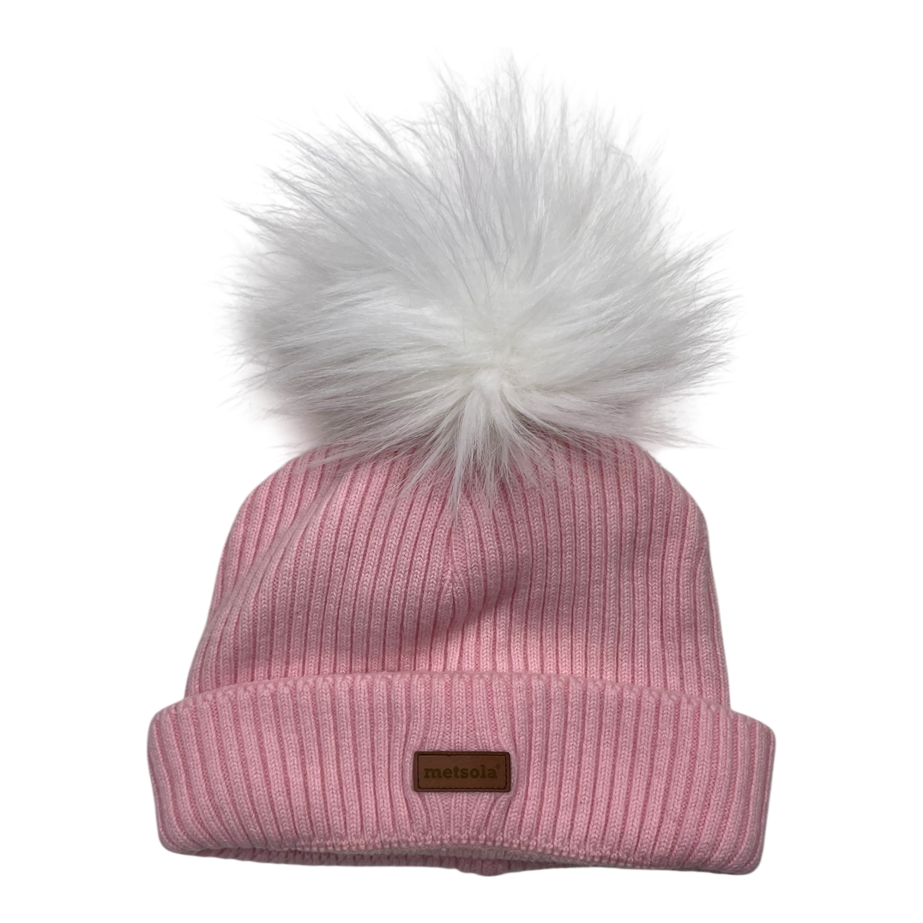 Metsola beanie with a fake fur pom.