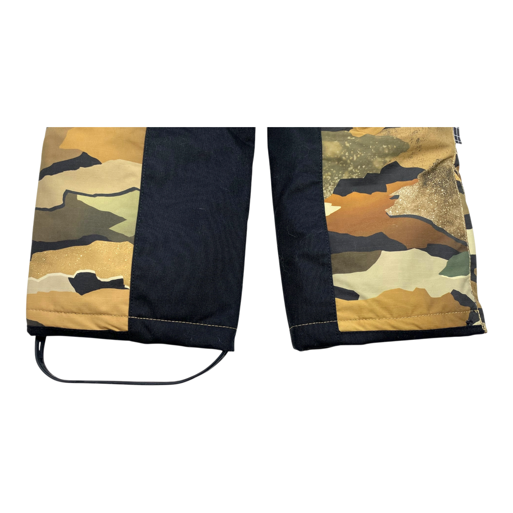 Molo jump pro winter ski pants with an adjustable waist and cuffs, rubber loops that can be put under shoes, reflectors in the back, snow flaps and two side pockets. Originally water and wind proof. The other footloop is missing.