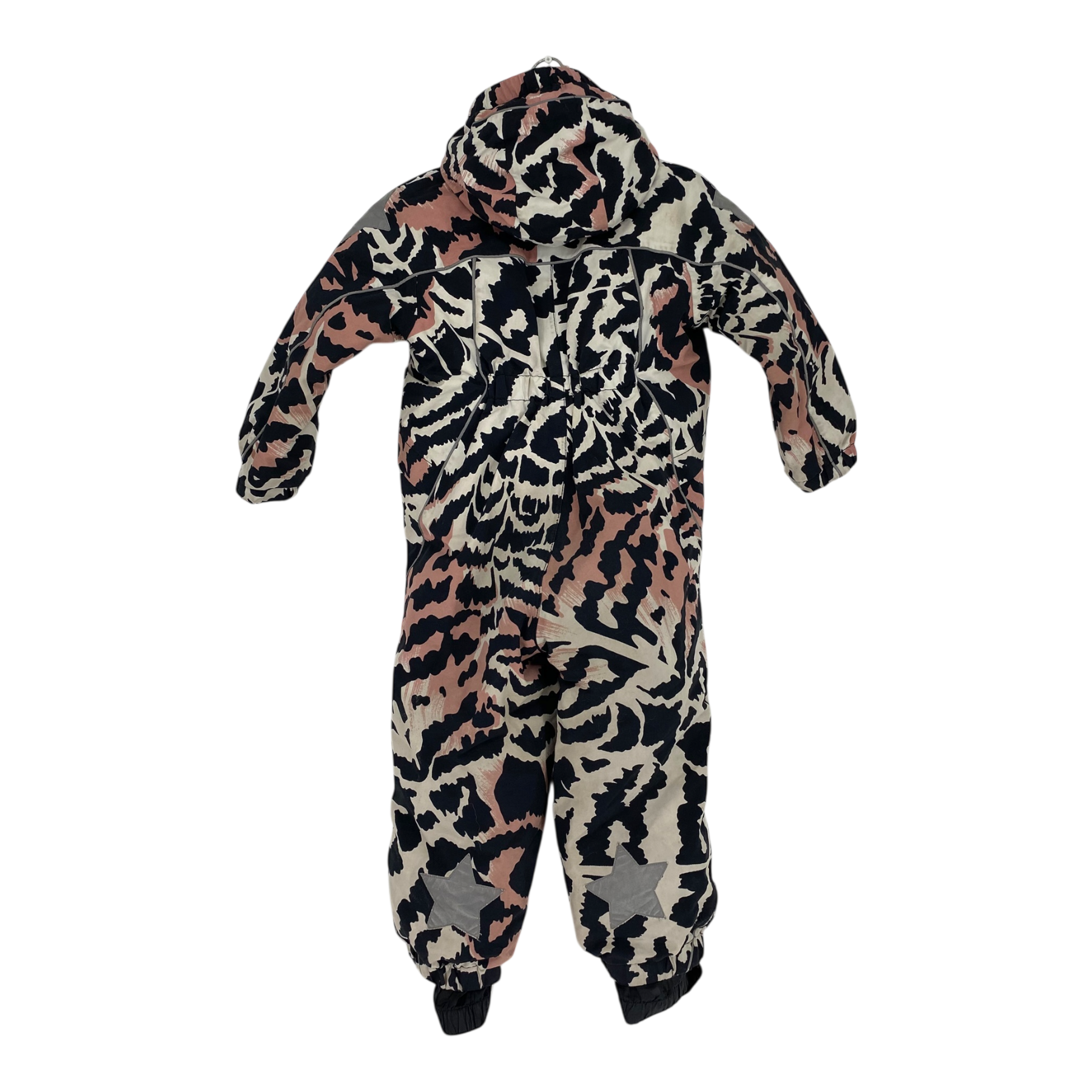 Molo Polaris is a functional snowsuit with reflector piping. Polaris has a detachable hood, a covered front zip closure and Molo's star reflectors on the sleeves and legs. It has snow flaps at the legs and rubber stirrups. The snowsuit is originally windproof, waterproof and breathable and has taped seams with 15.000 mm column pressure.