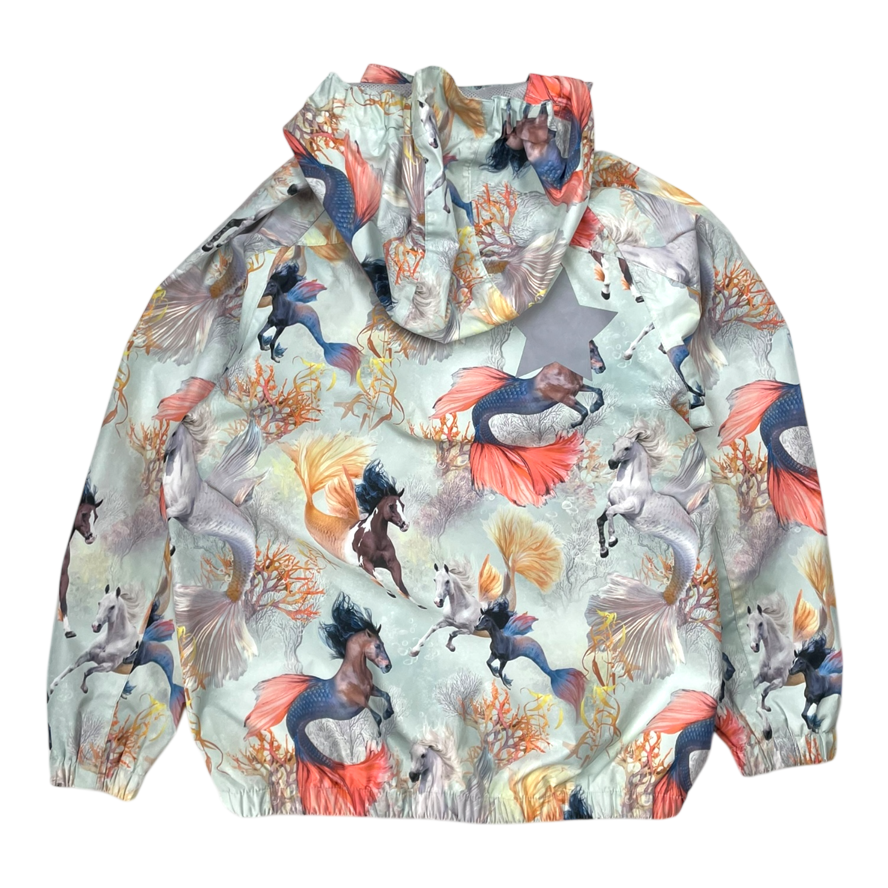 Molo mid season jacket in Horses of the sea -print with pockets and a reflective star on the back. The jacket is originally waterproof, windproof and breathable.
