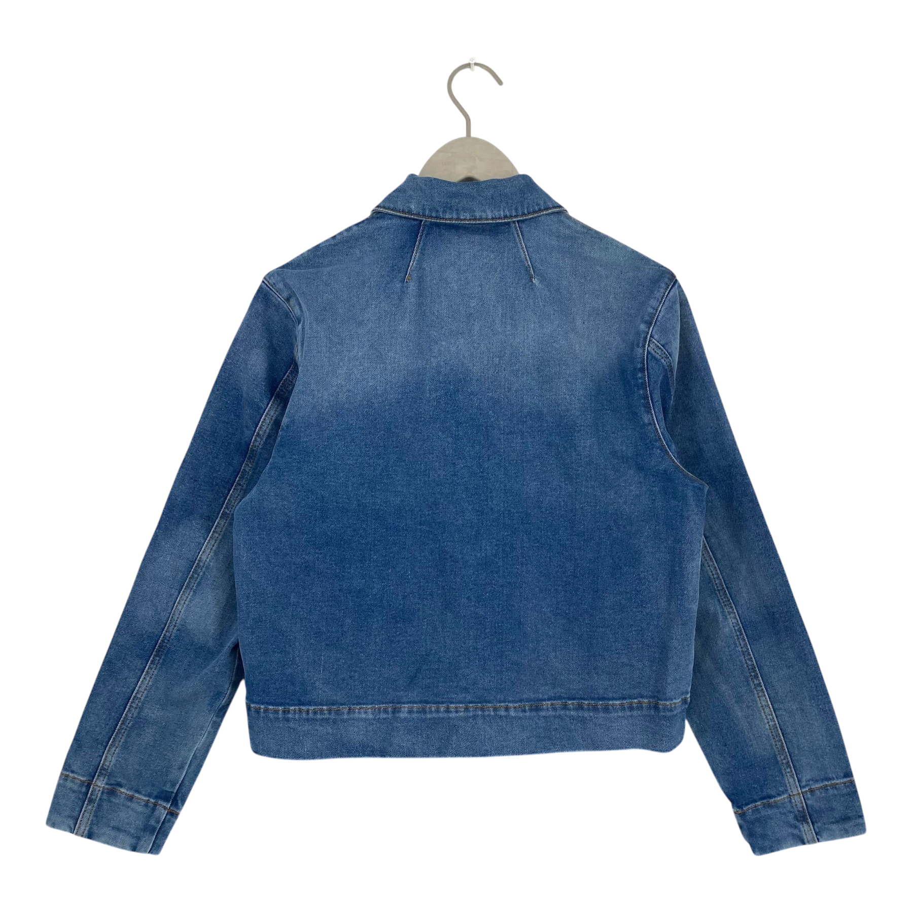 Mud Jeans Denim jacket has button closure in the front, two side pockets and a cropped fit.