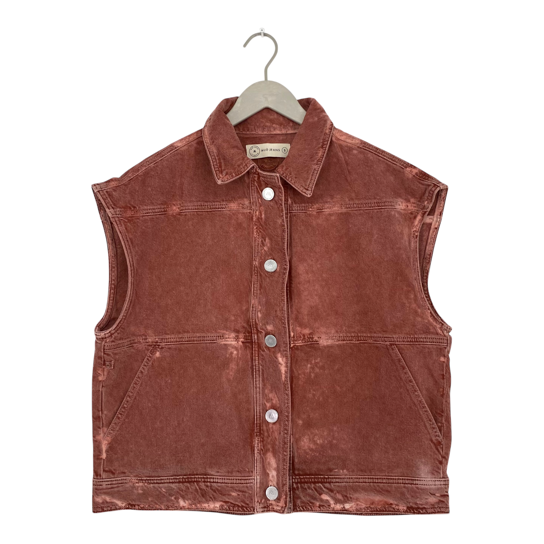 Mud Jeans Vivian denim vest has a slightly oversized fit, pockets on the sides and a button closure in the front.