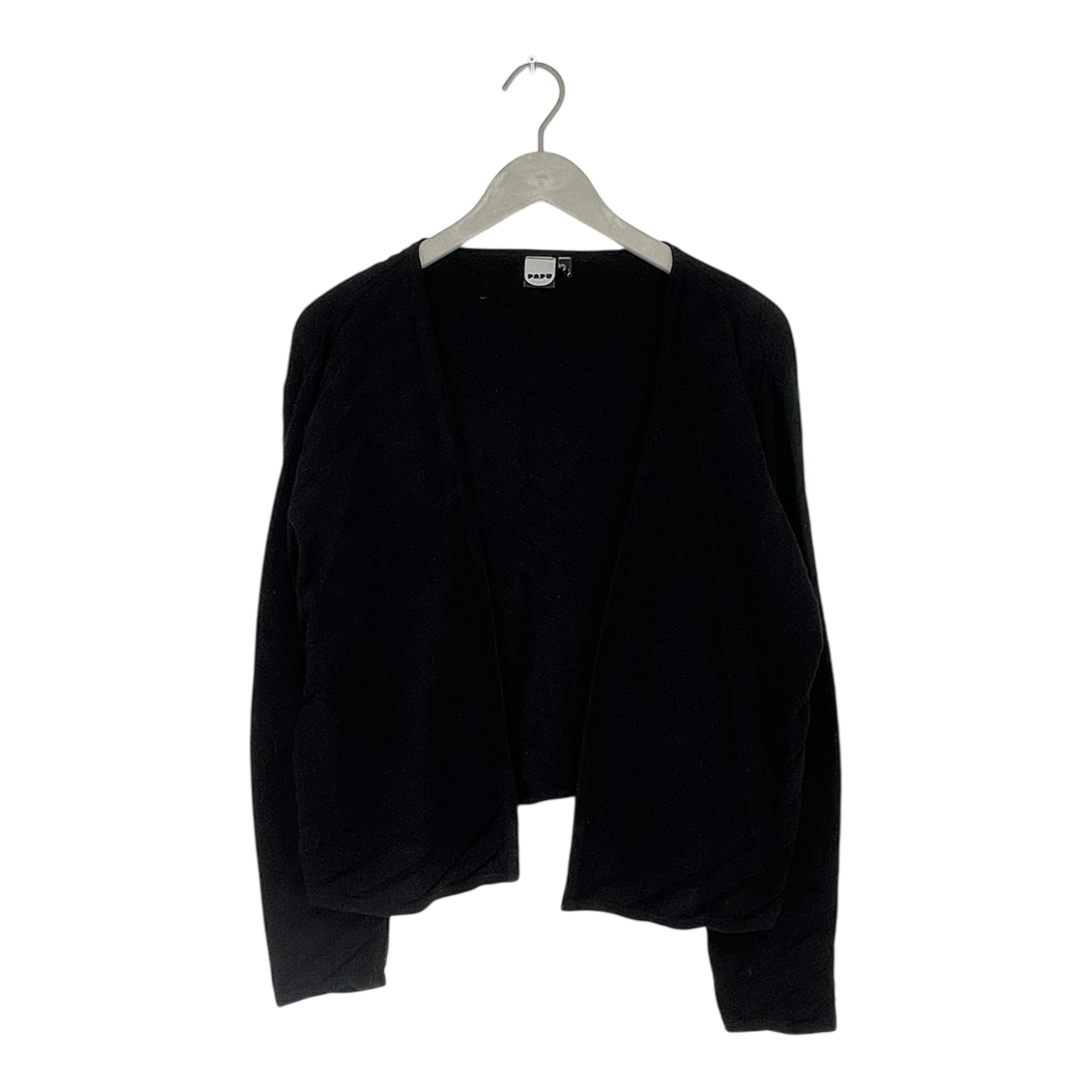 Papu women's cropped PETIT-cardigan with knitted diagonal stripes. The fit is quite snug and most likely fits sizes S to M better than sizes M to L.