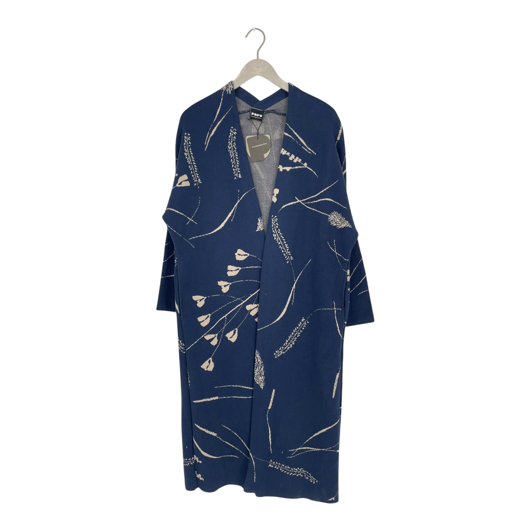 Papu women's jacquard knitted long cardigan with side pockets and dropped shoulder fit in the elegant Breeze design.