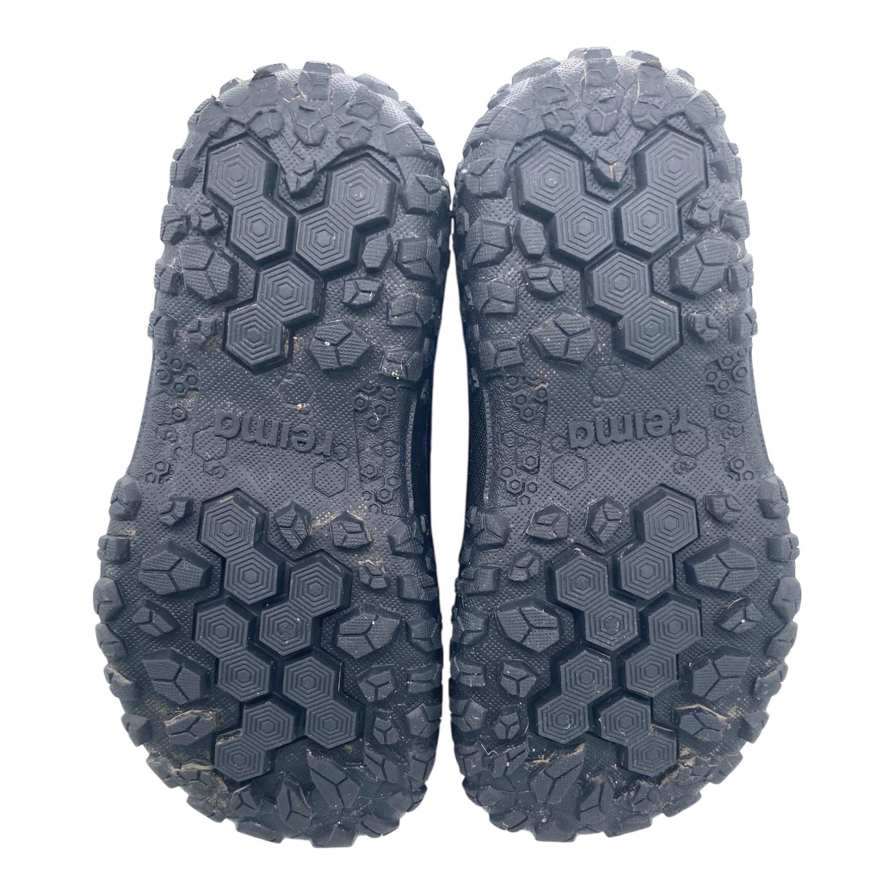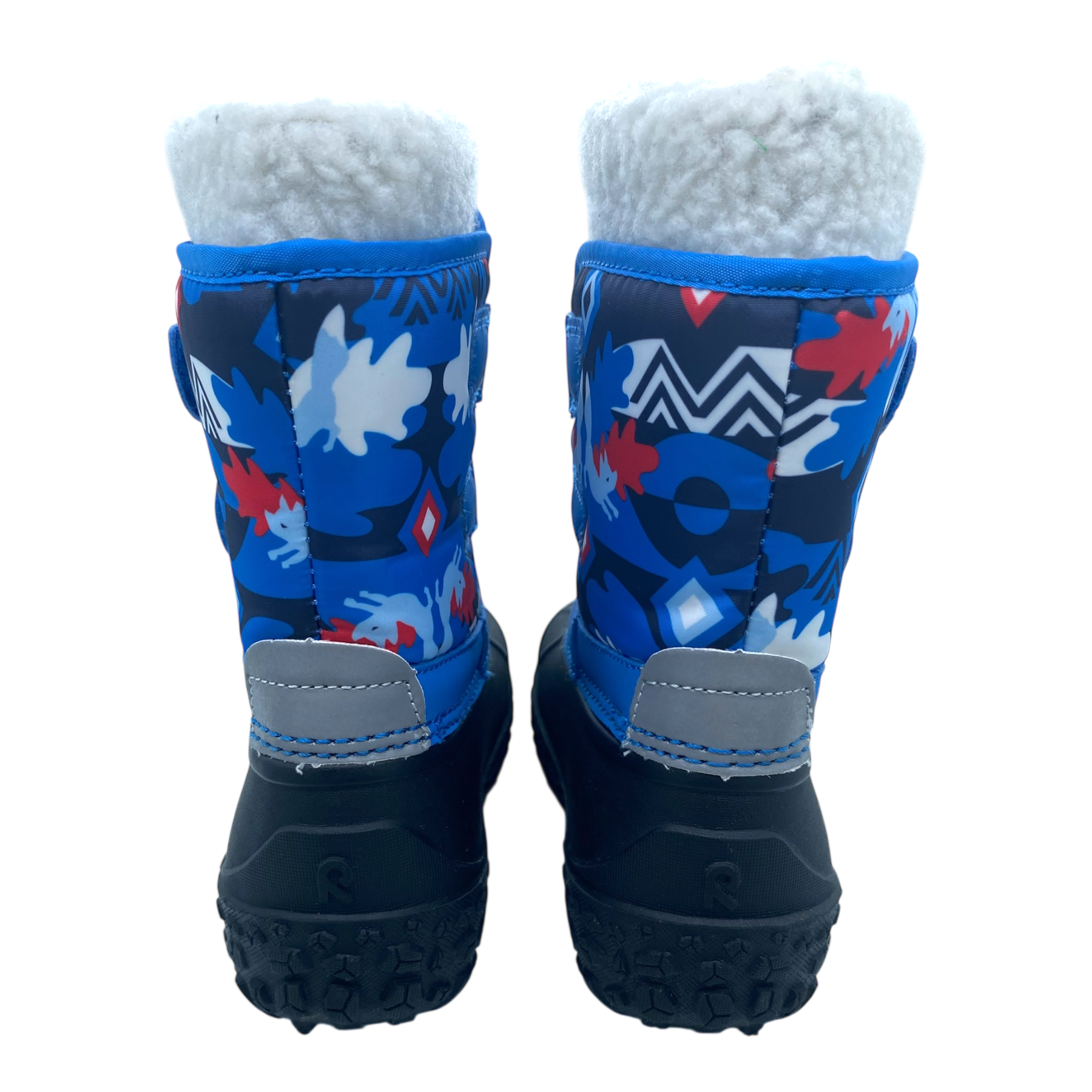 Reima Konkari winter duck boots with two velcro fastenings. Shoes have a waterproof galosh section in durable thermoplastic rubber. Protects from slush on wet days.