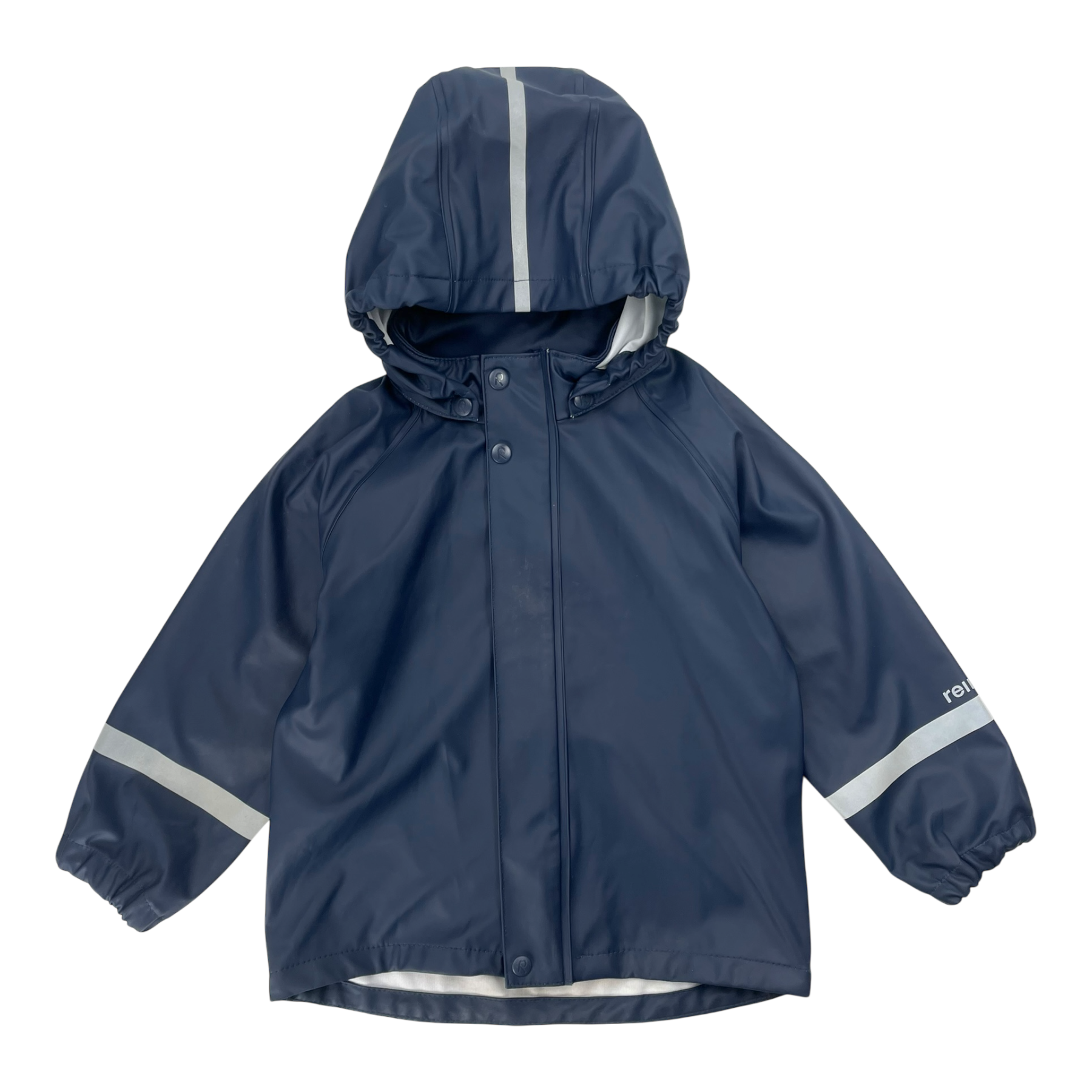 Reima Lampi rain jacket for kids with reflective details and detachable hood.
