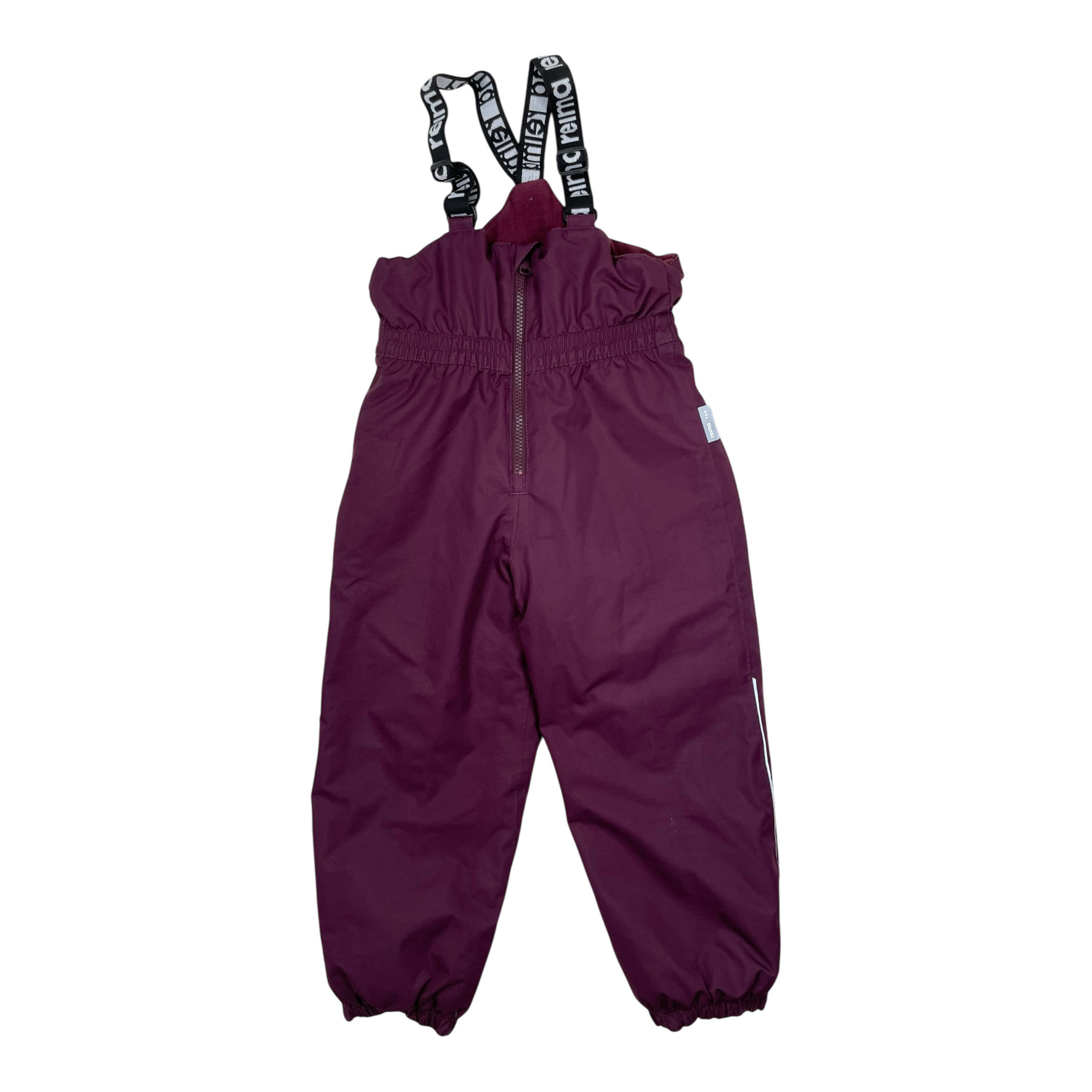 Reima Matias outdoor pants with elastic suspenders, zip closure, and durable foot loops. Material is originally waterproof up to 10,000mm water column, has warm insulation, yet is breathable.