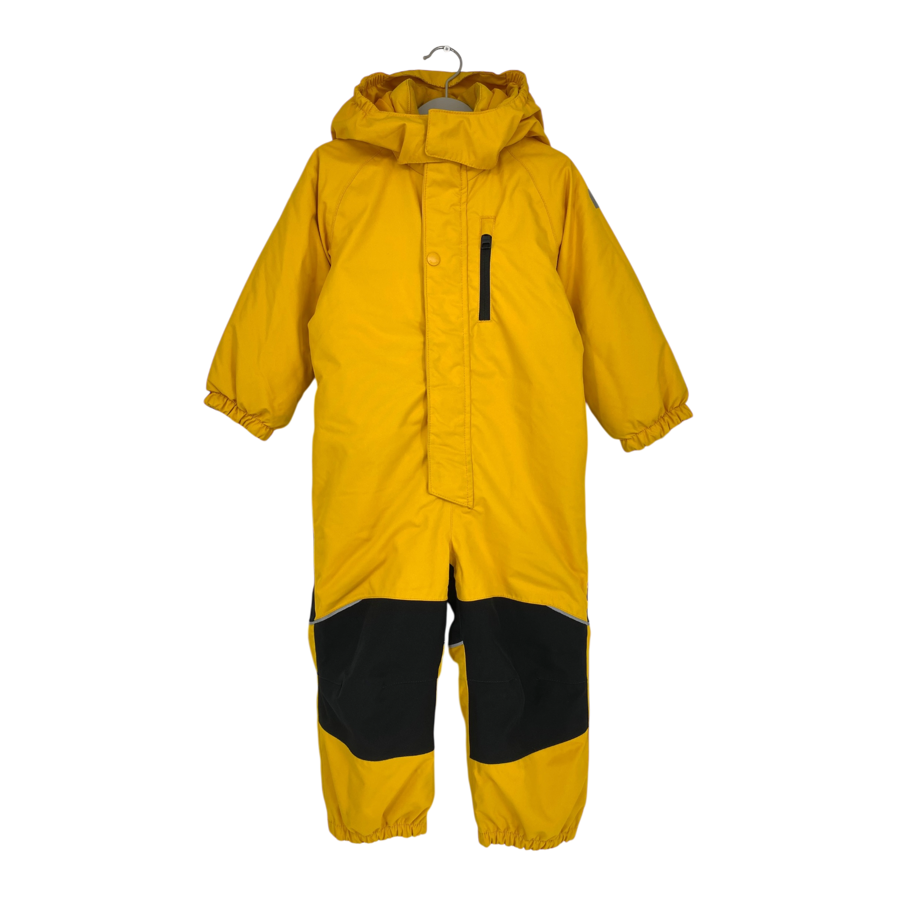 Reima Pakuri winter overall with detachable hood, durable foot loops and one zip pocket. Reinforcements on the knees and seat. Most essential seams are taped.