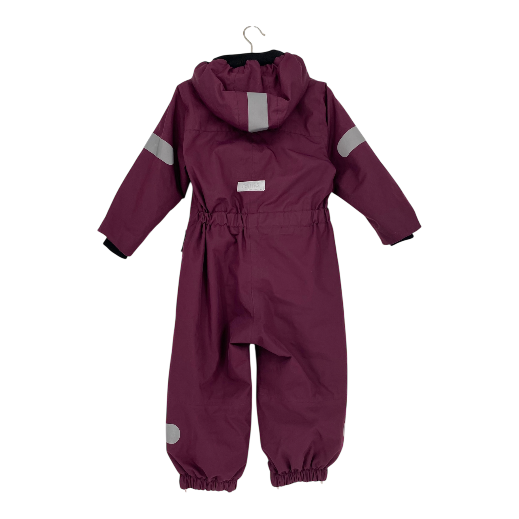 Reima Sevetti midseason overall draws inspiration from Reima's '70s-style collections. Overall has a detachable hood, adjustable elastic on the waist, silicone foot loops and two flap pockets on the front.