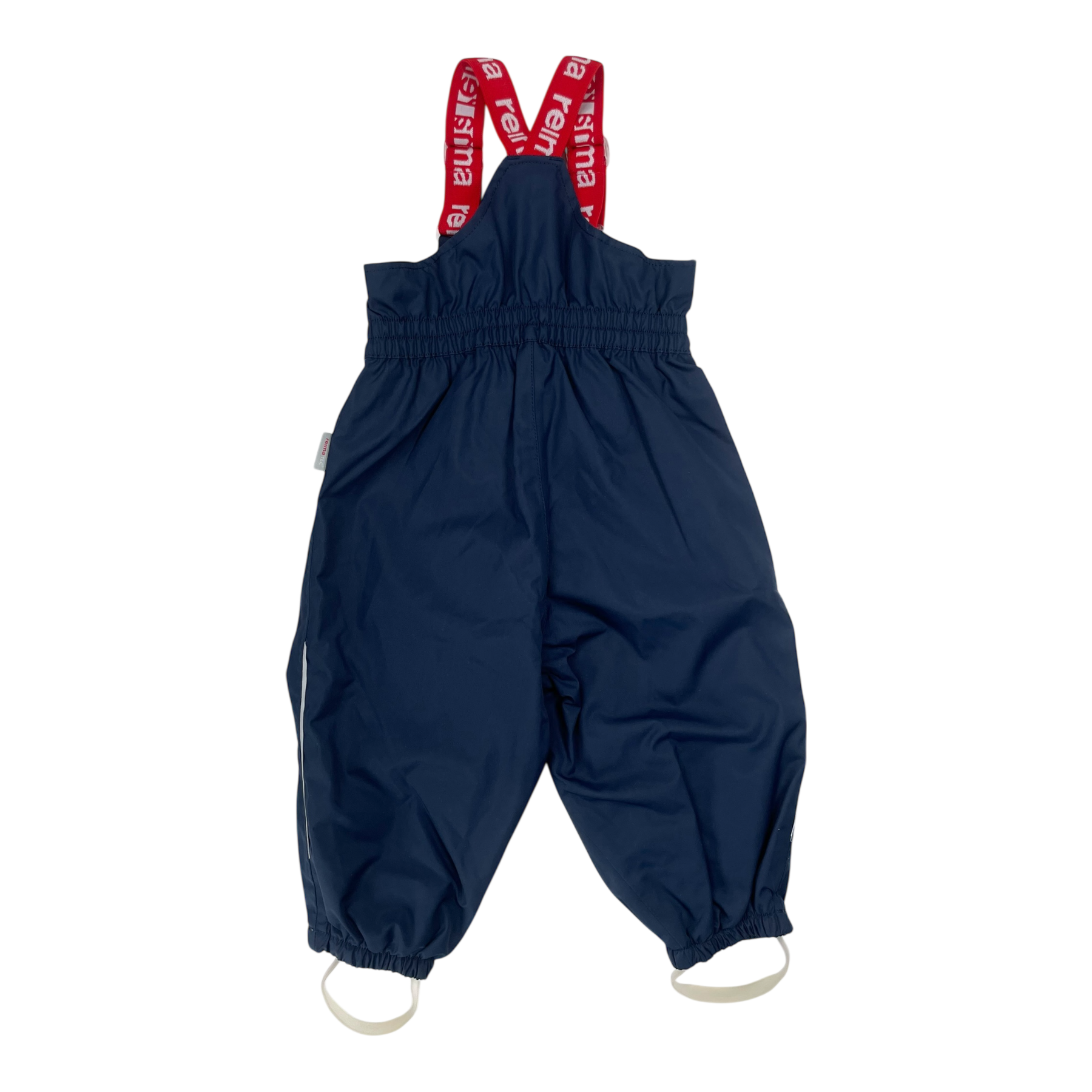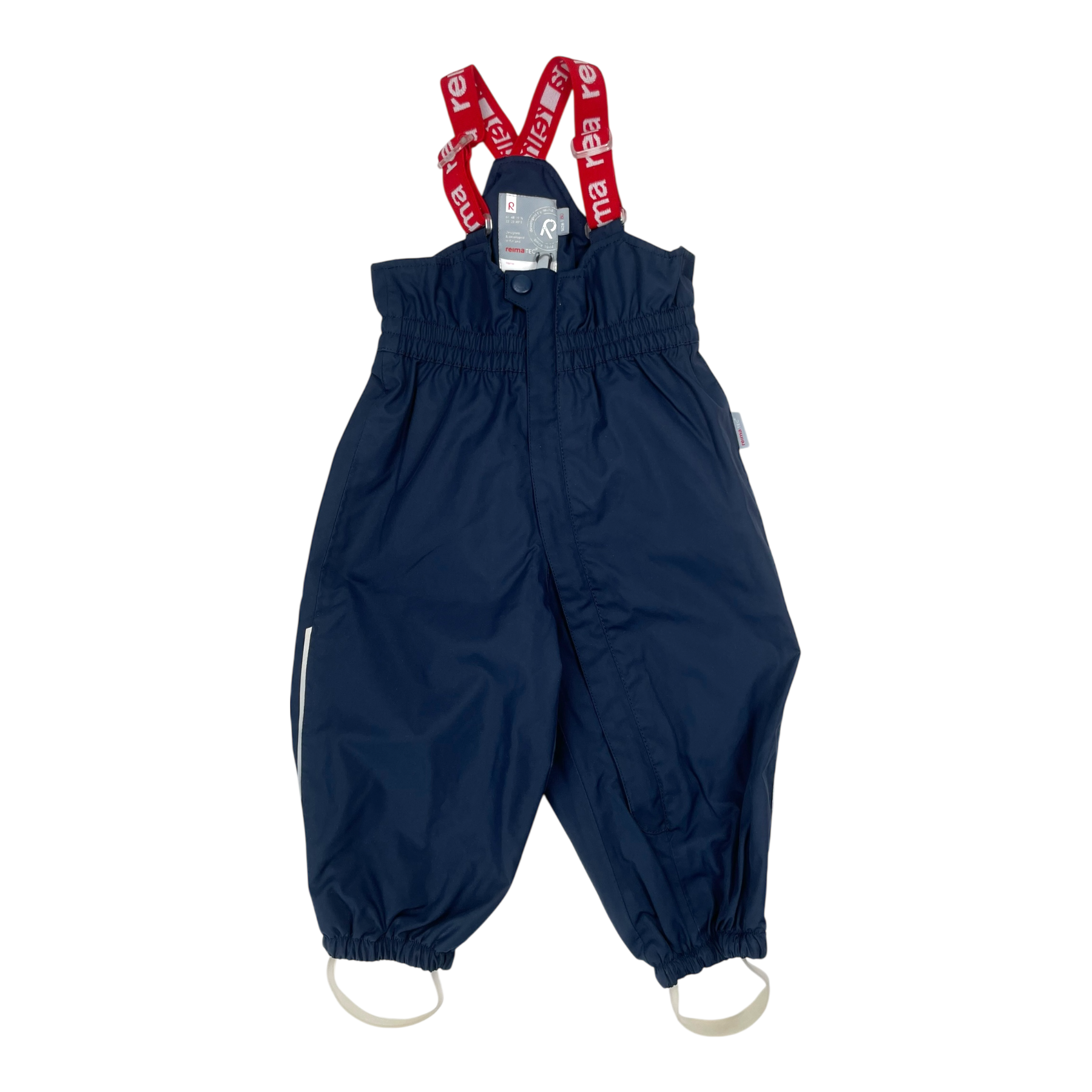 Reima Tuikku mid-season pants with elastic and adjustable suspenders. Pants have long zip closure and durable foot loops. Material is originally wind- and waterproof.