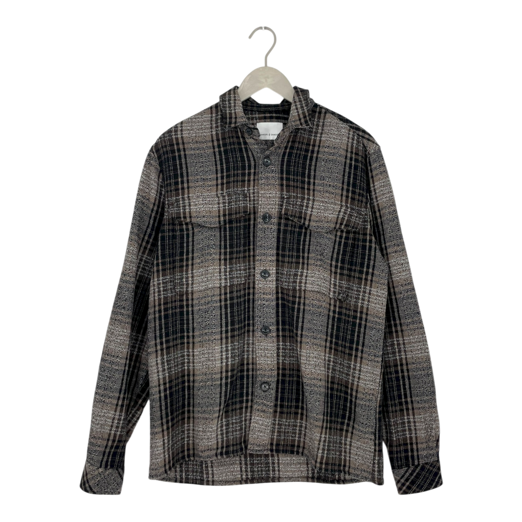 Samsøe Samsøe flannel button shirt in brown. two pockets on chest.