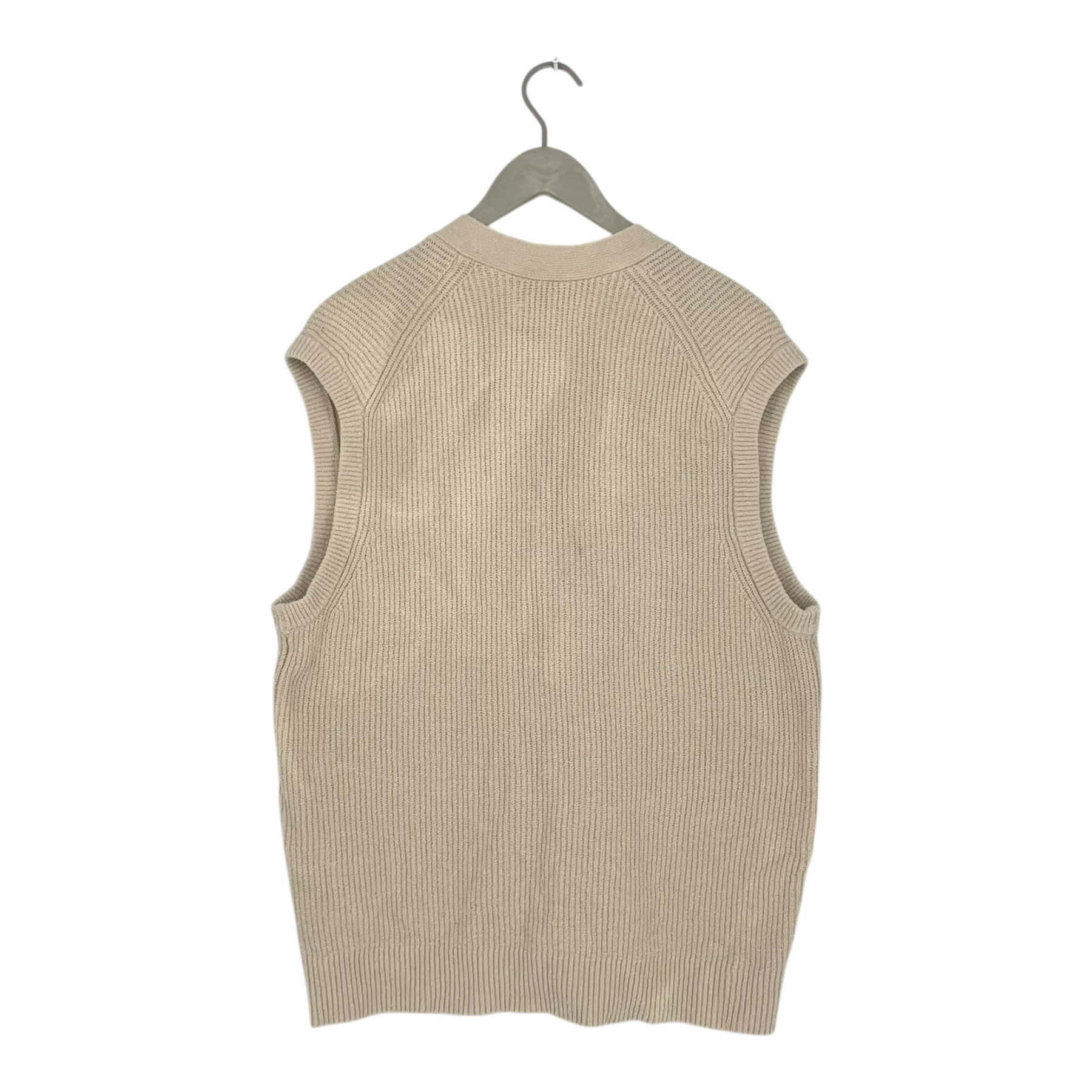 Samsøe Samsøe men's knitted vest. The vest is otherwise in good condition, but there is some color transfer on the back from washing. The stain is not very noticeable, though it can be seen under good lighting.