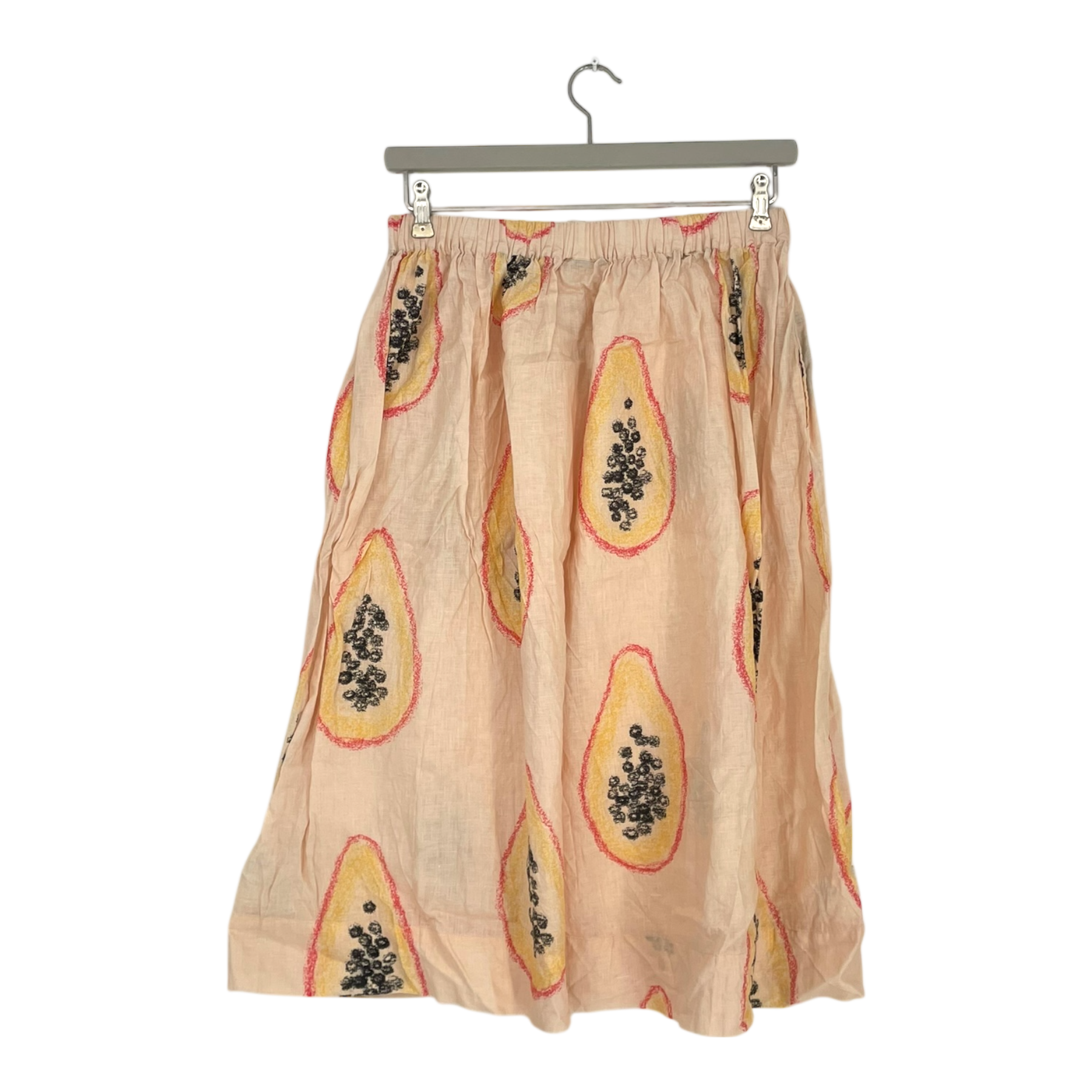 Aarre anne skirt in papaya print with pockets on the sides.