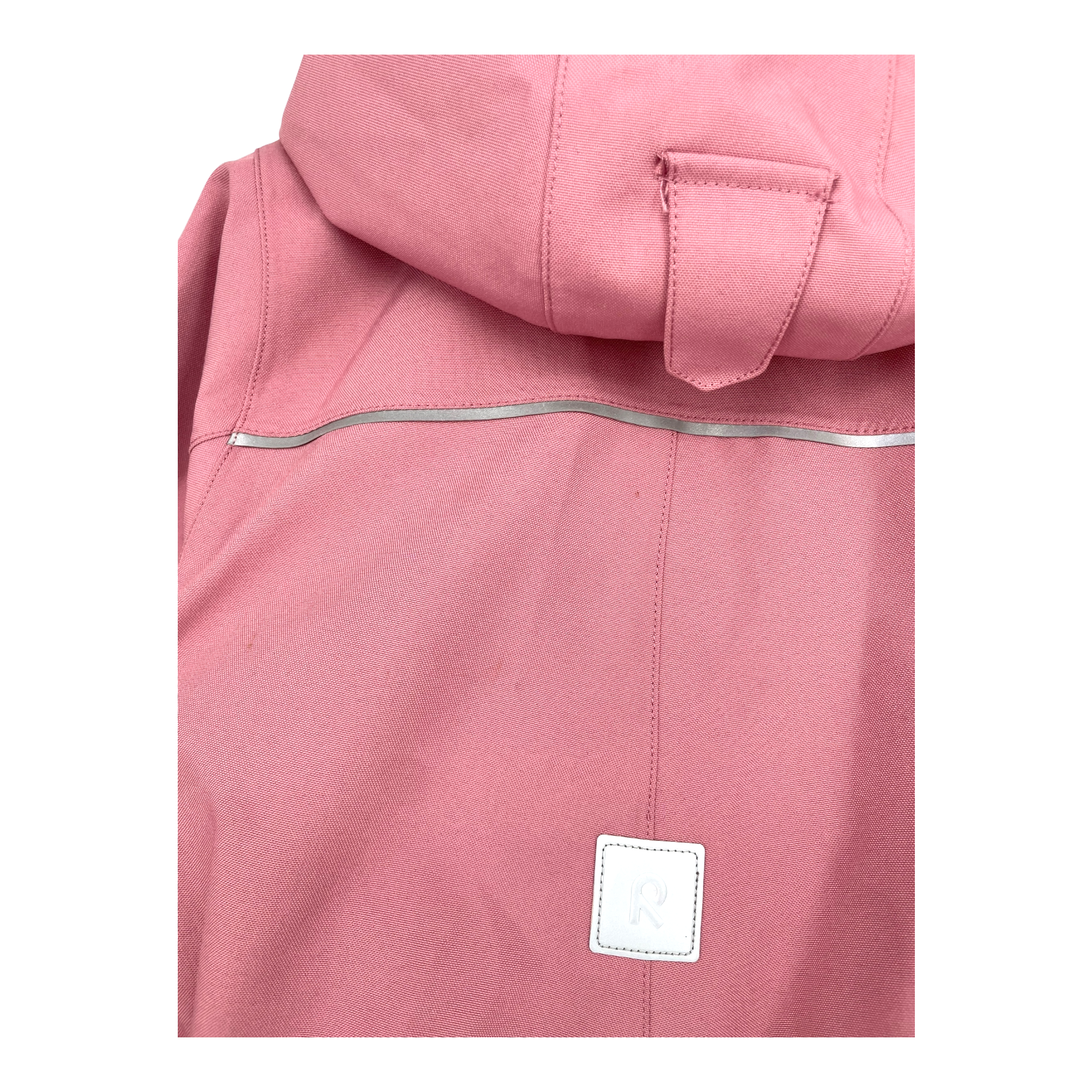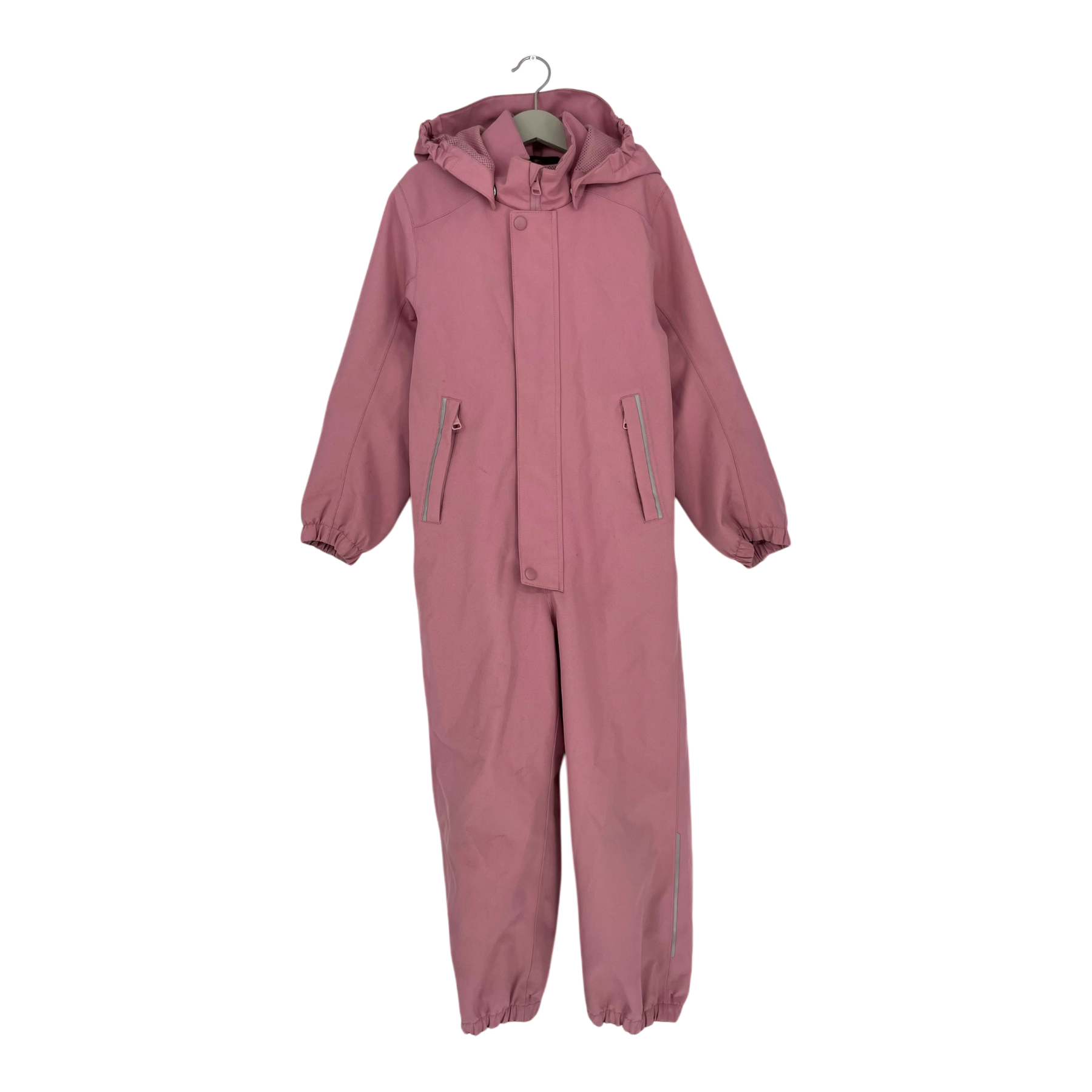 Reima Lieksa mid-season overall with detachable hood, zip pockets on sides, reflective details, adjustable elastic on the waist, and durable foot loops. Overall  is the ultimate gear for free outdoor play in spring and fall, and it is super durable. Originally waterproof and breathable, up to 10,000mm water column.