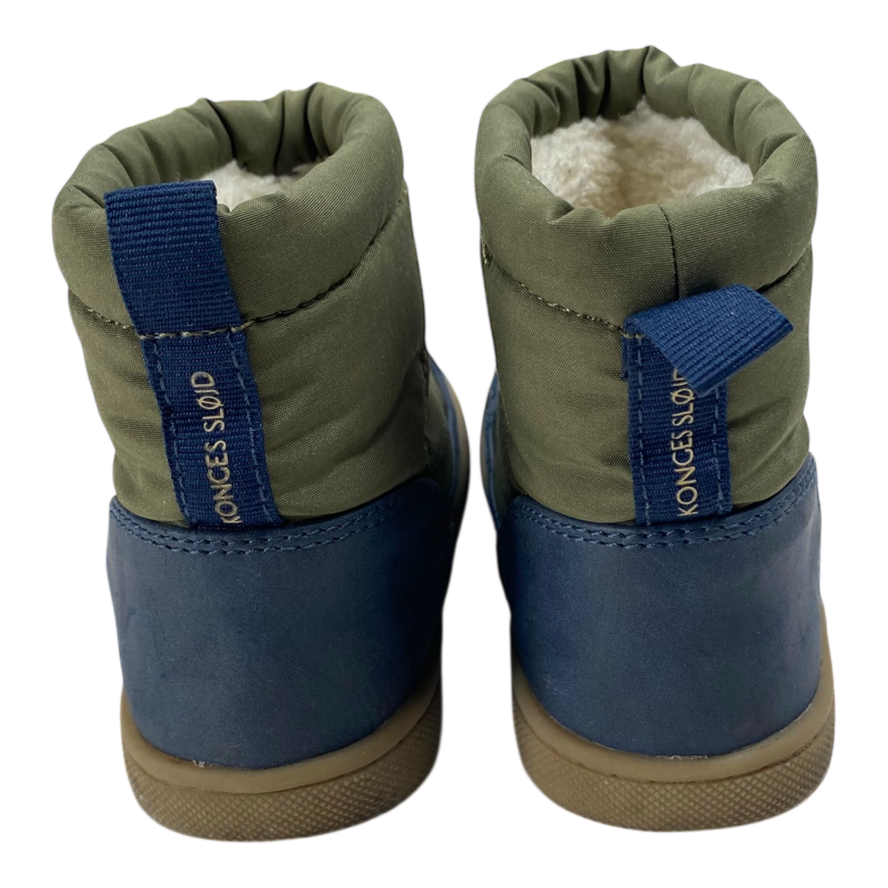 Konges Slojd storma winter boots in moss green color and fleece inside.