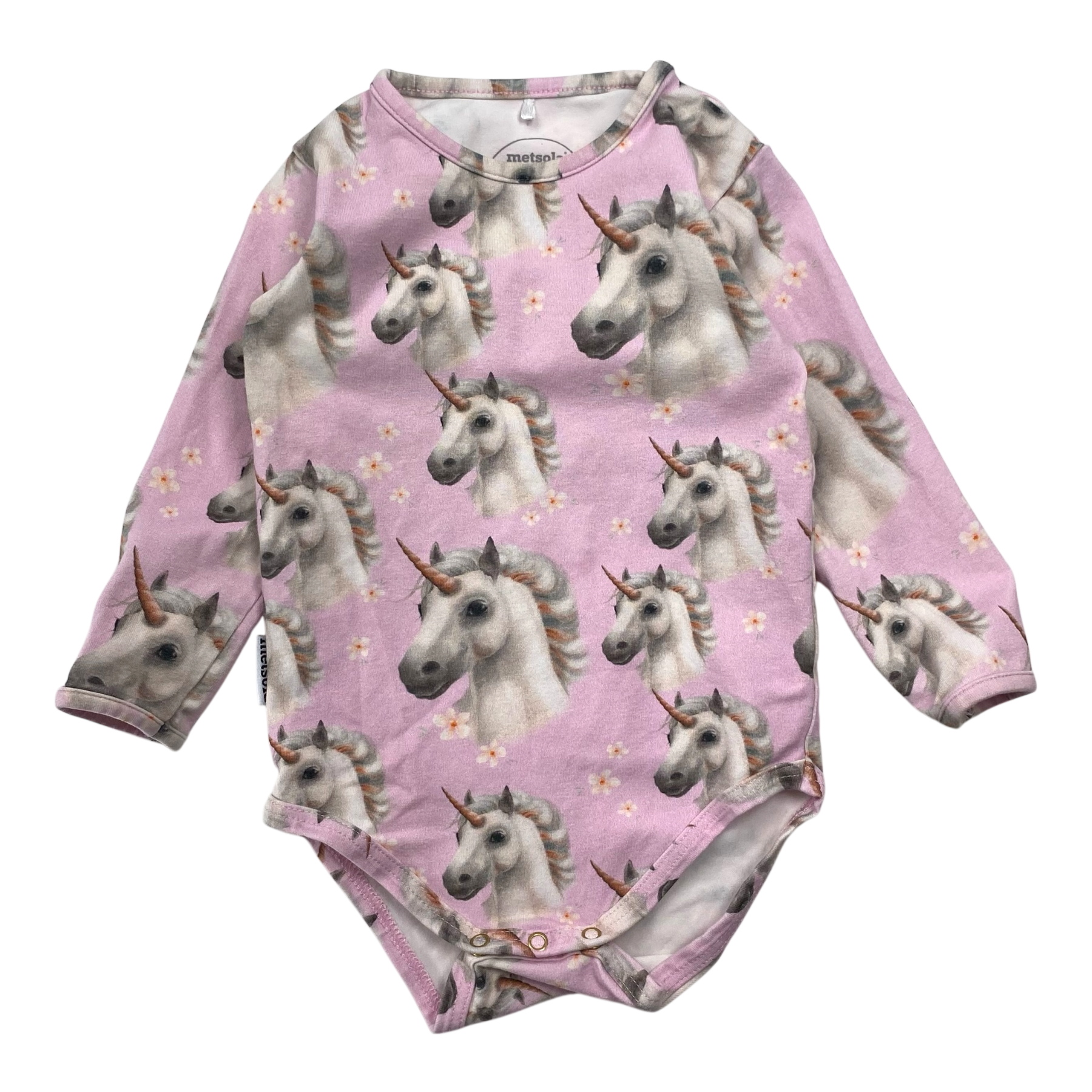 Metsola body with snap buttons in unicorn print.