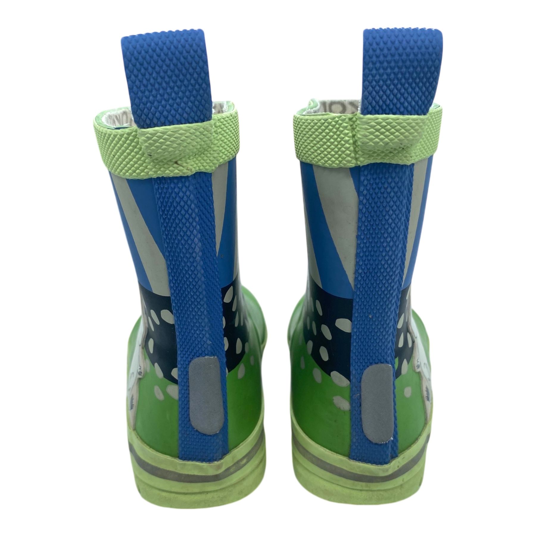 Reima x Moomin classic cotton-lined kids' rubber wellies. Shoes have some visible stains, which are probably removable in a wash.