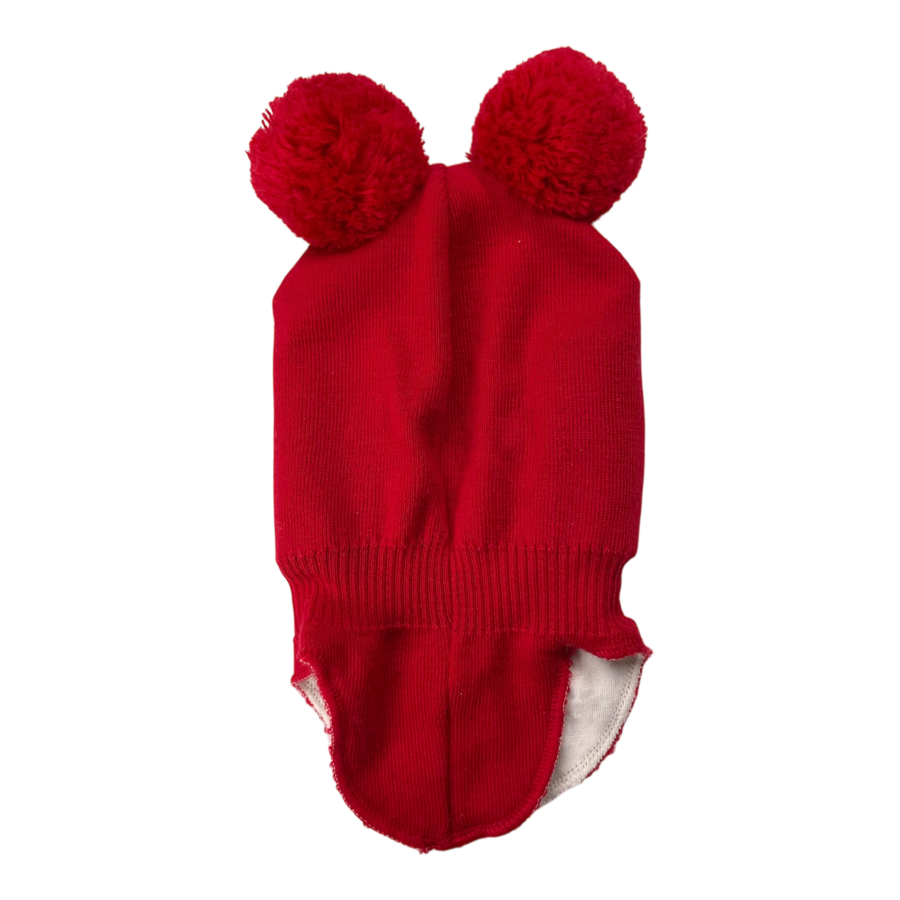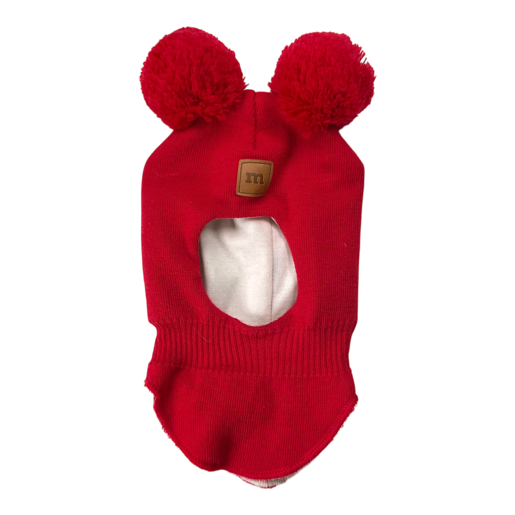 Metsola merino wool balaclava with poms, red | 2-6m