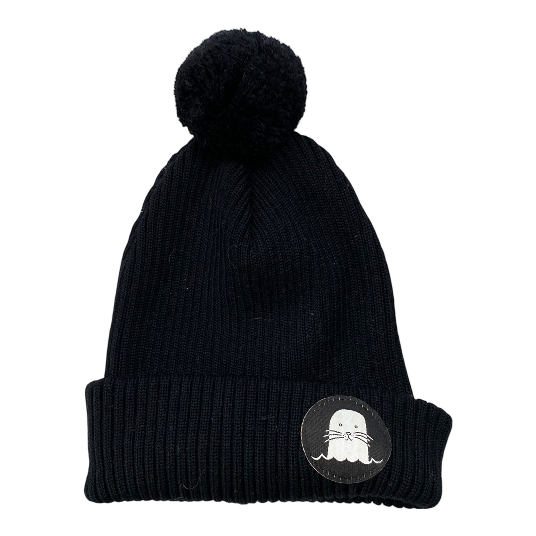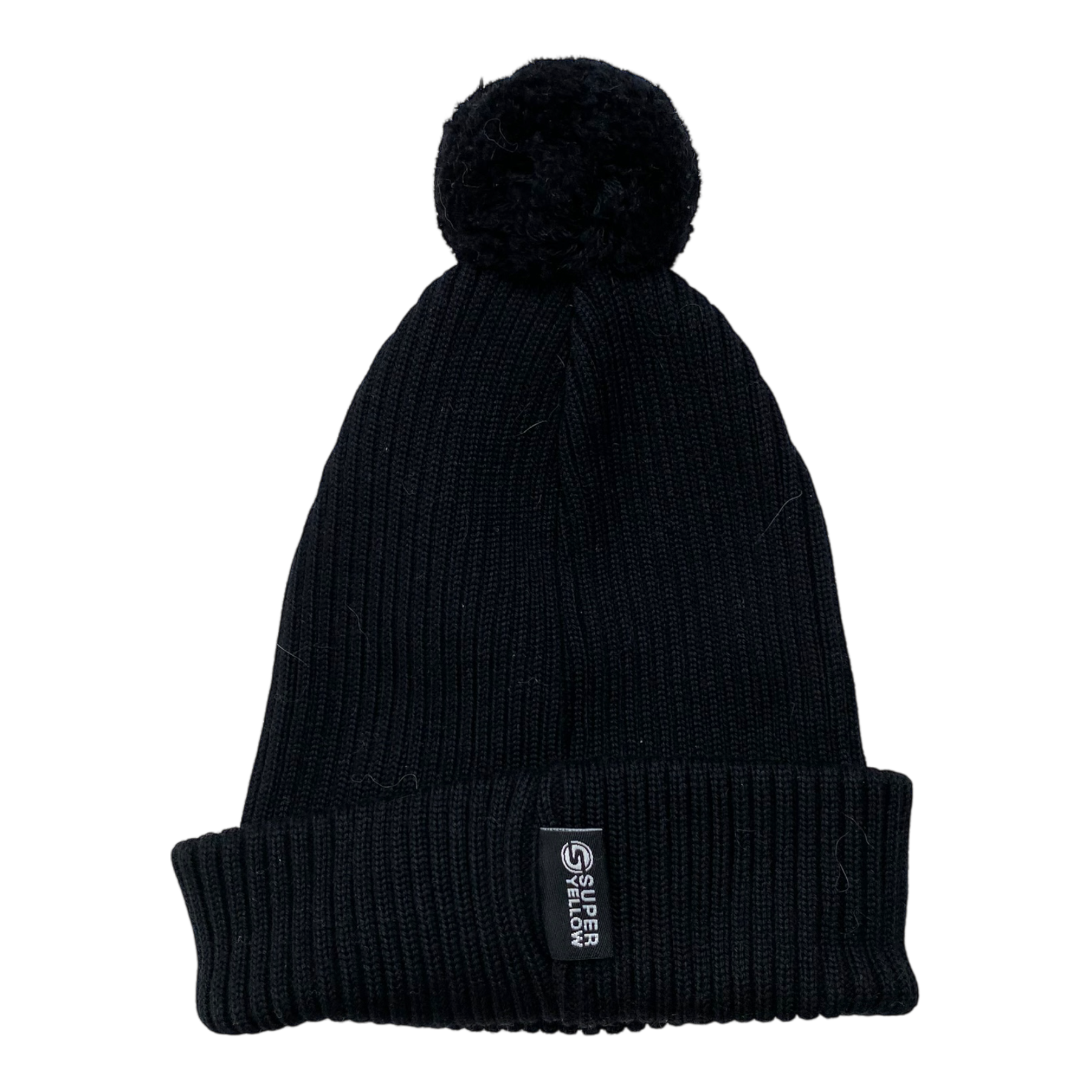 Superyellow junior pom merino beanie, black | 52-56cm