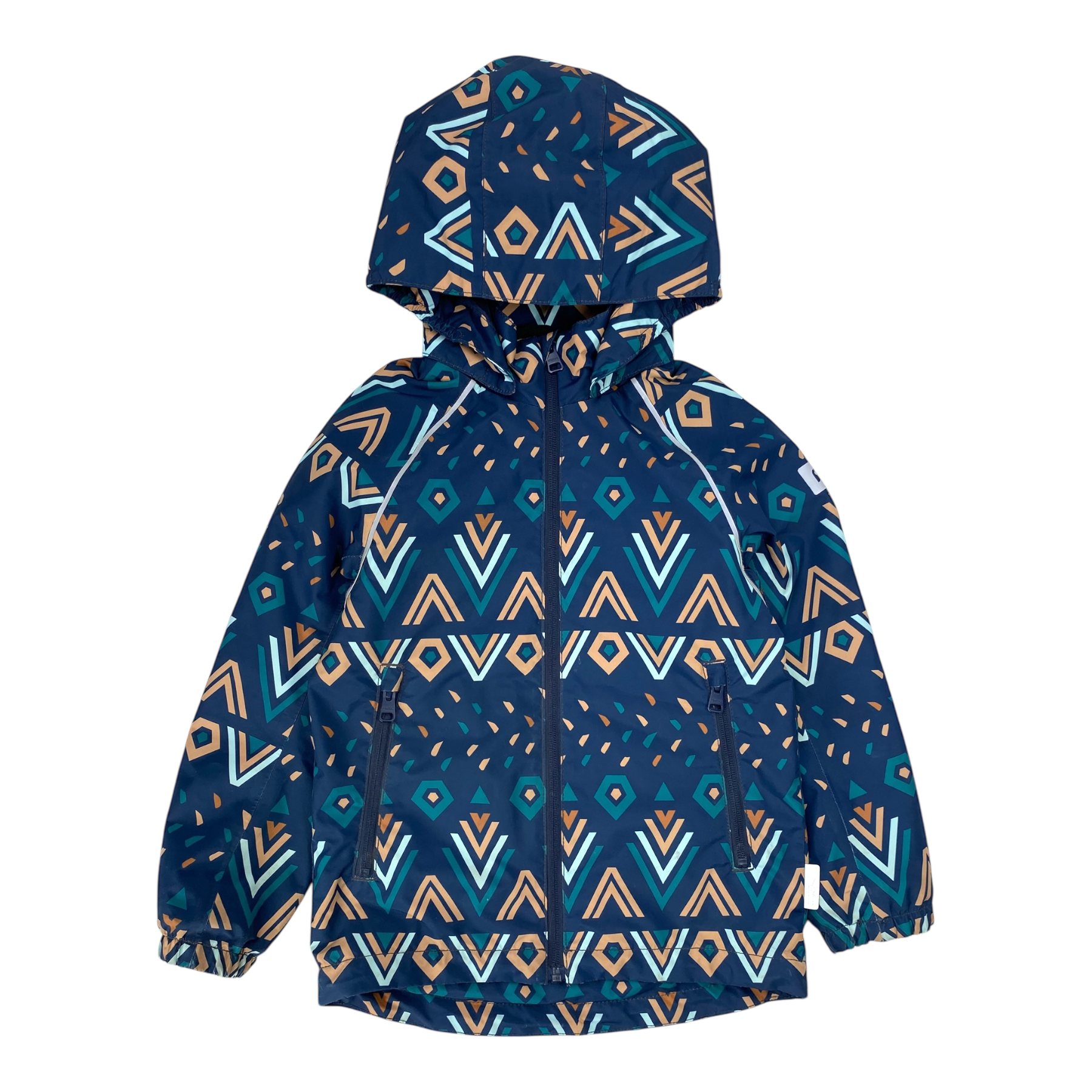 Reima Kalliola mid-season jacket with a detachable hood, elastic cuffs, and two zip pockets in front. Hem is adjustable, and the jacket is originally wind- and waterproof.