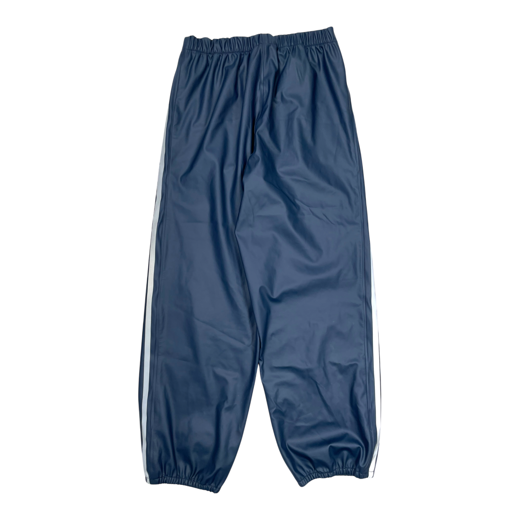 Reima Oja rain pants for muddy activities. The rain pants have an elastic waist, reflecting details and foot loops. There is some light stains as shown in the picture.