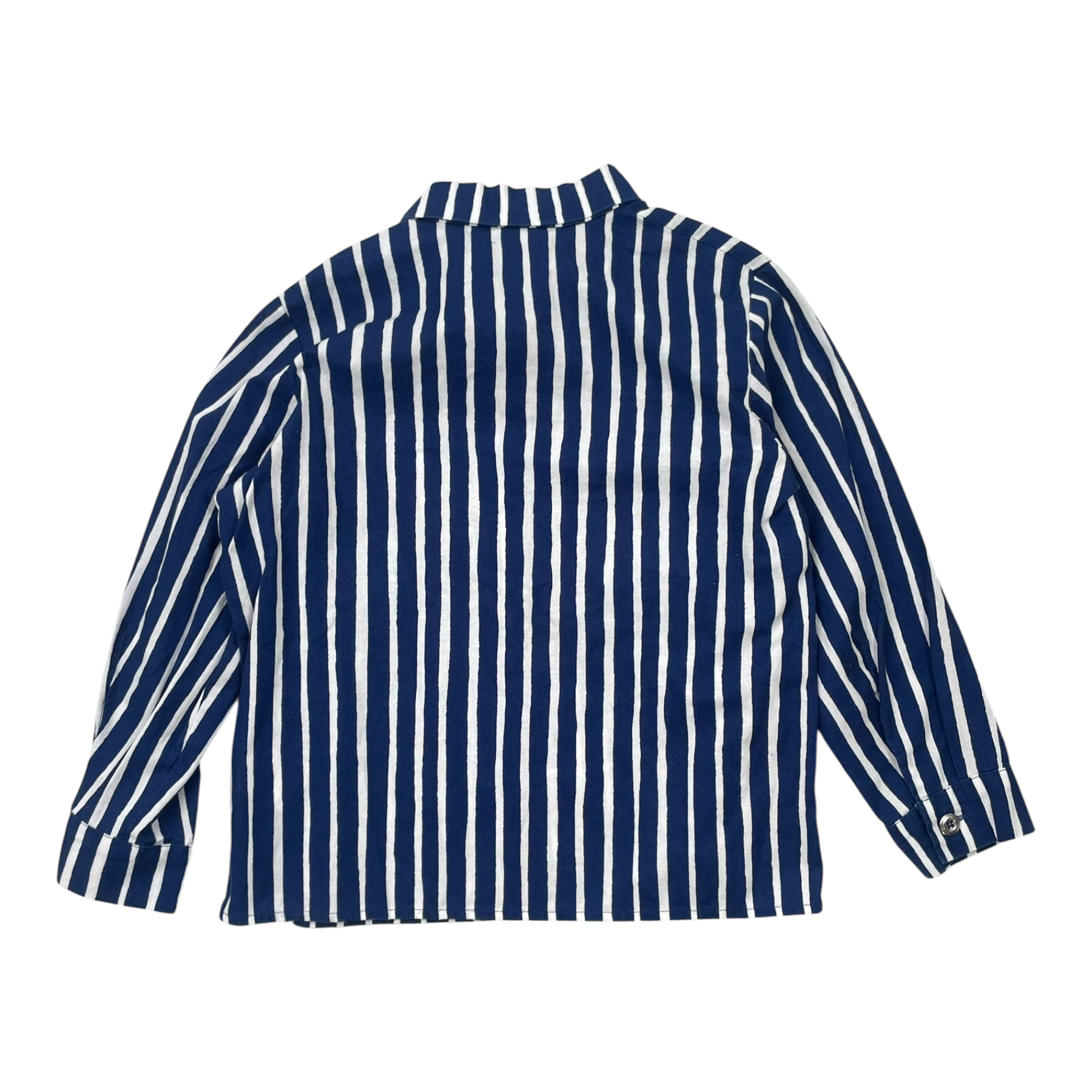 Marimekko long sleeve Jokapoika shirt in stripes print with metal buttons in the front.