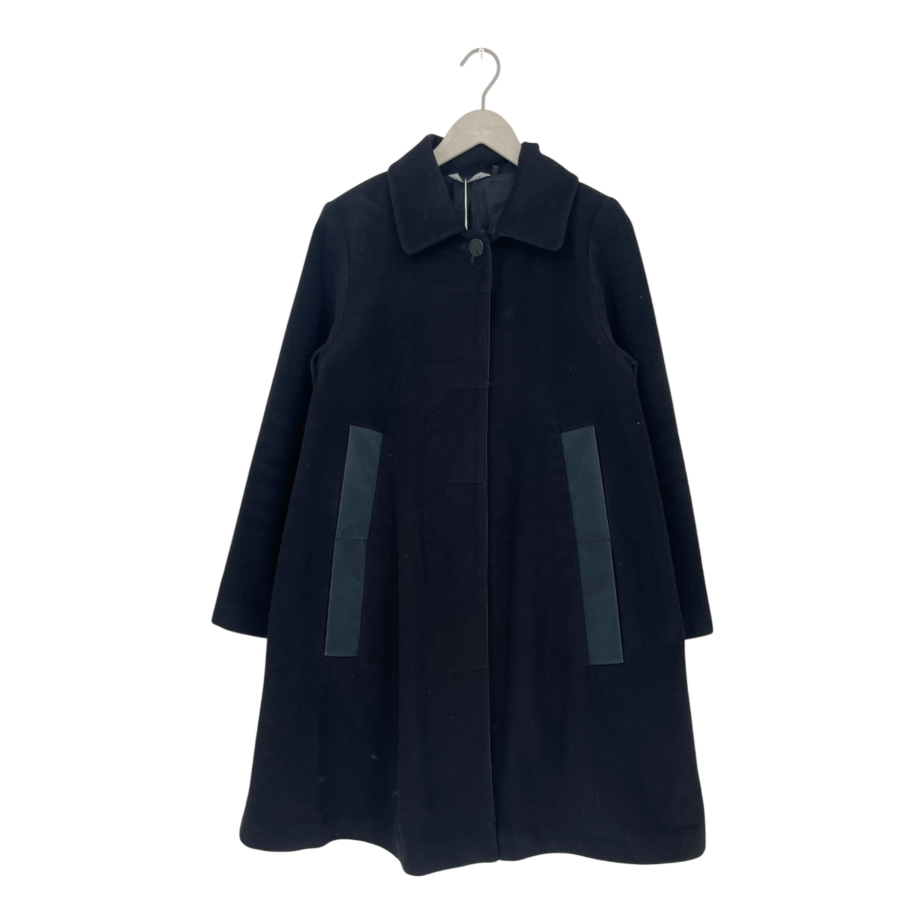 Marimekko Talli winter wool coat with contrasting pocket detailing, Marimekko logo buttons with overlaying button flap and wide collar. Barely visible wear on the armpits, as shown in the pictures.