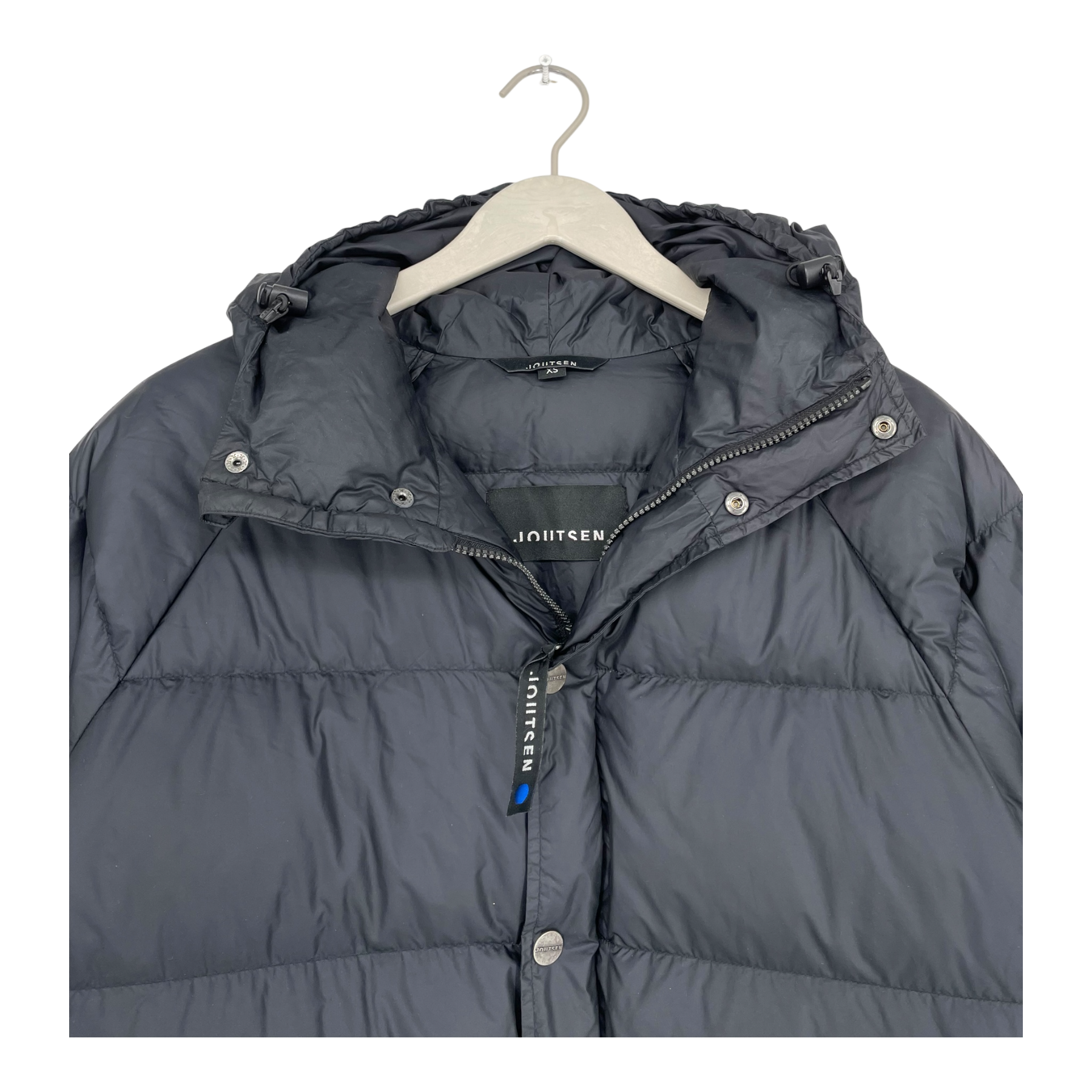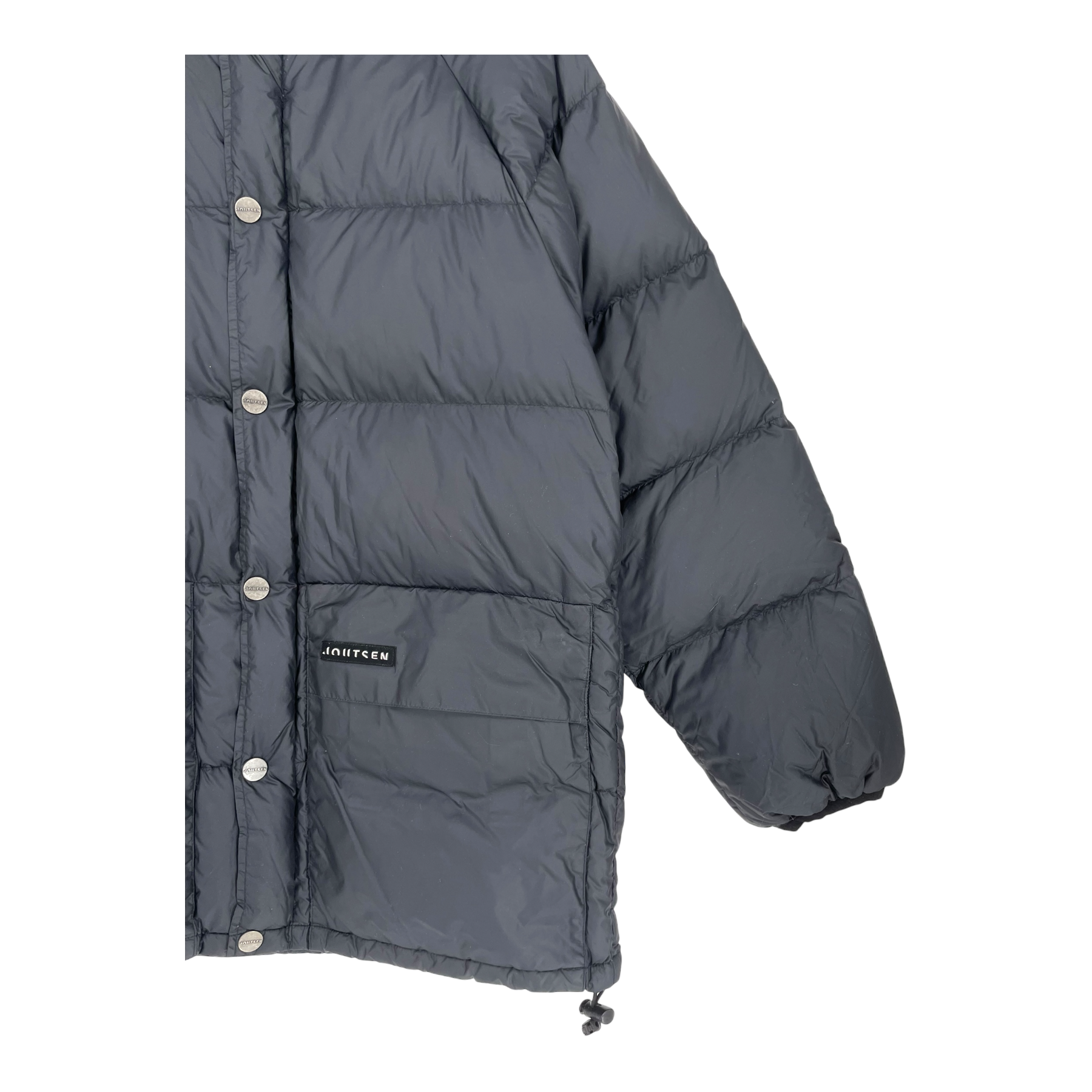 Joutsen Tauko jacket is plush and warm down jacket that feels super comfortable and light when worn. The jacket has two big front pockets with zipper closure and the jacket can be packed into a small space in its zippered front pocket. There is snap buttons and a double-slider fastening zipper that adds comfortability and daily functionality in the front. The adjustable hood can be worn down or up according to the weather. The jacket is great both for women and men.