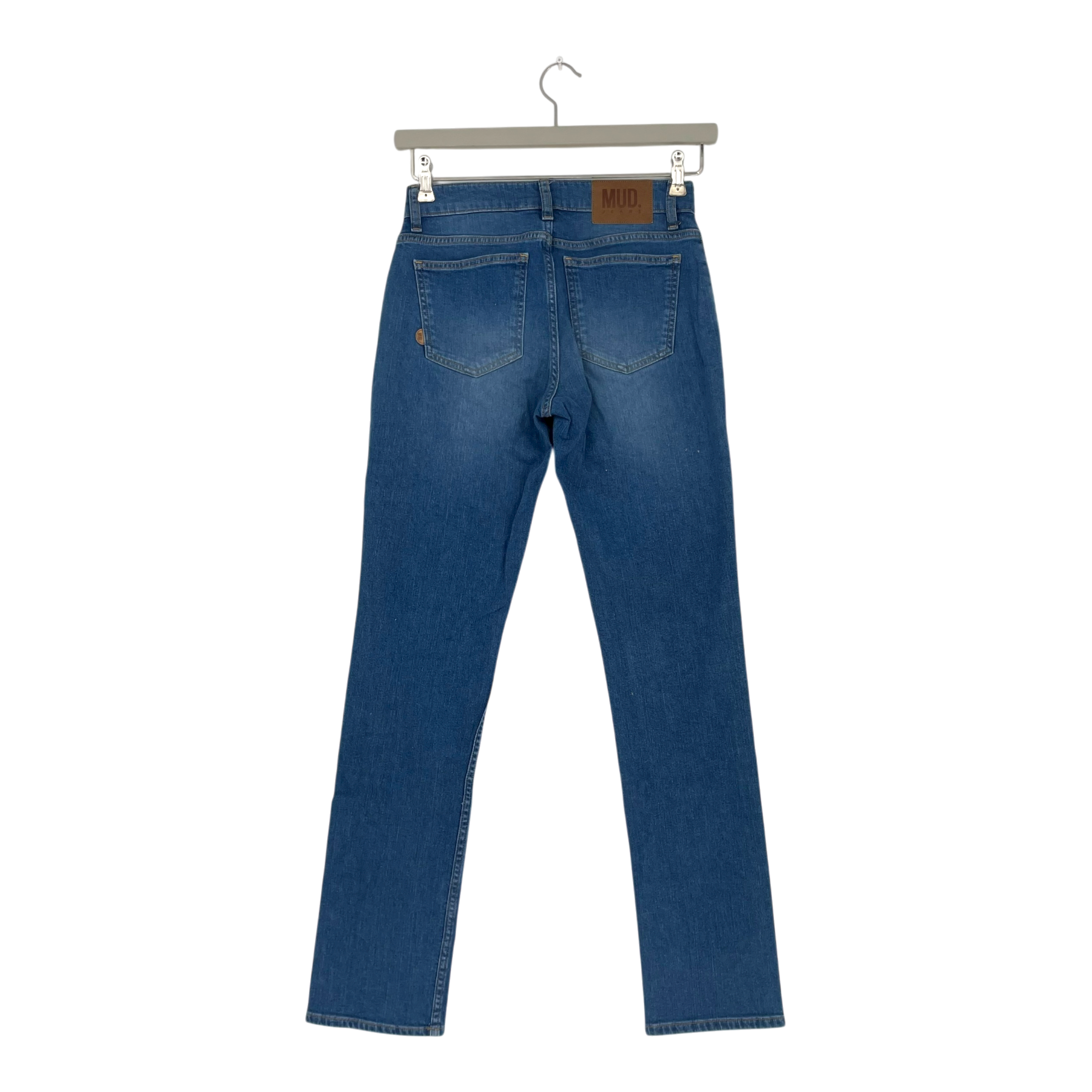 Mud jeans Logan mid-rise slim jeans. They highlight the figure with a slim fit and mid waist. They are tailored through the hips, with a gentle taper towards the ankles. Designed for comfort using a stretch fabric.