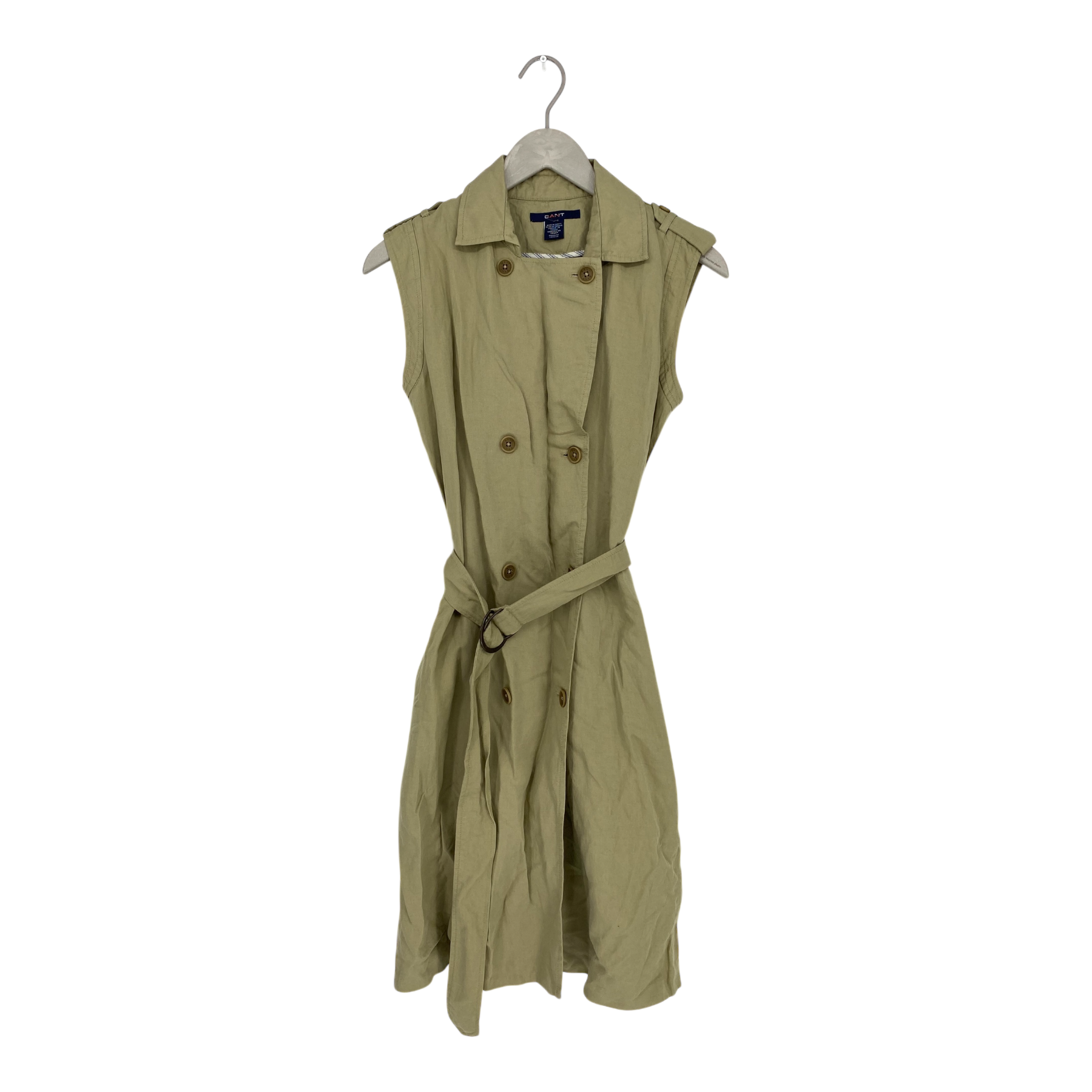 Gant buttoned vest dress with side pockets and belt. The size tag is cut off but item is approximately size S /M