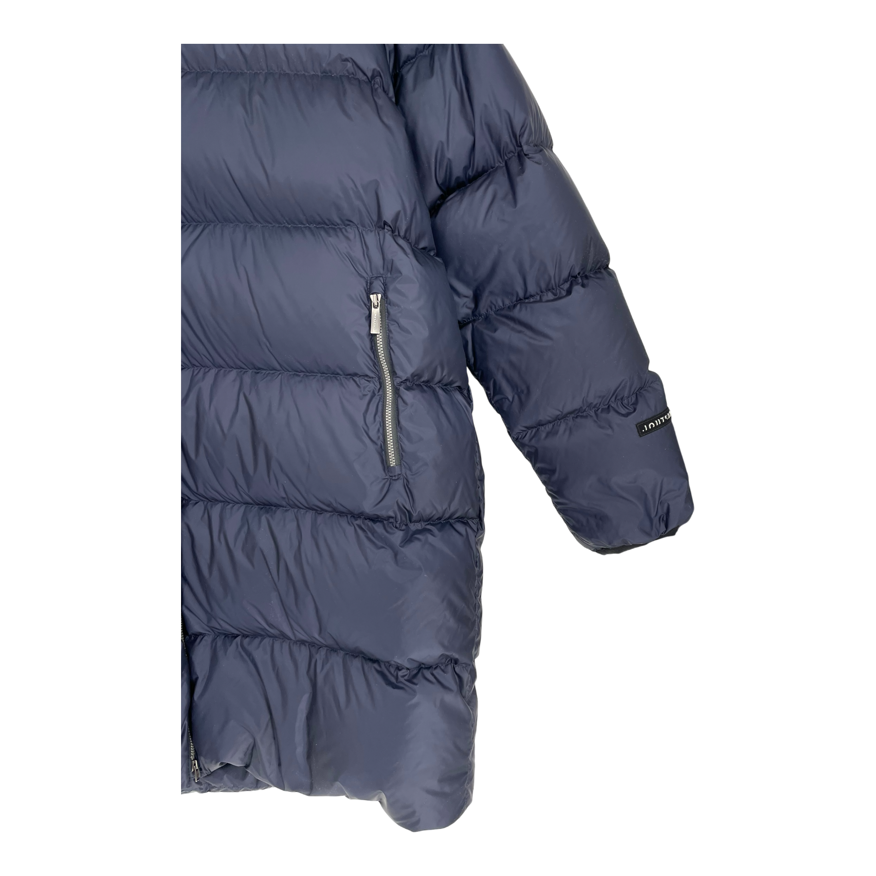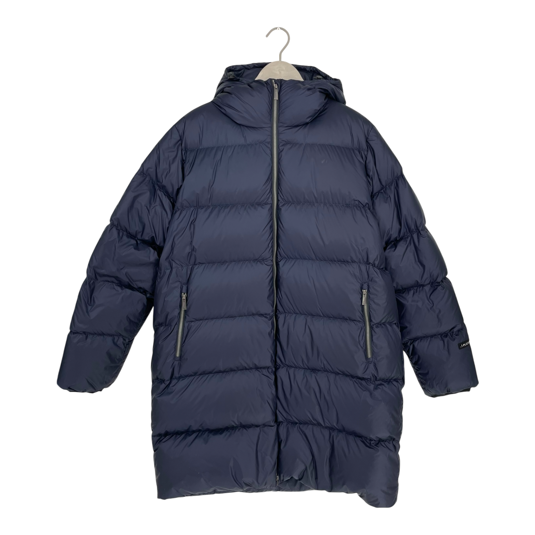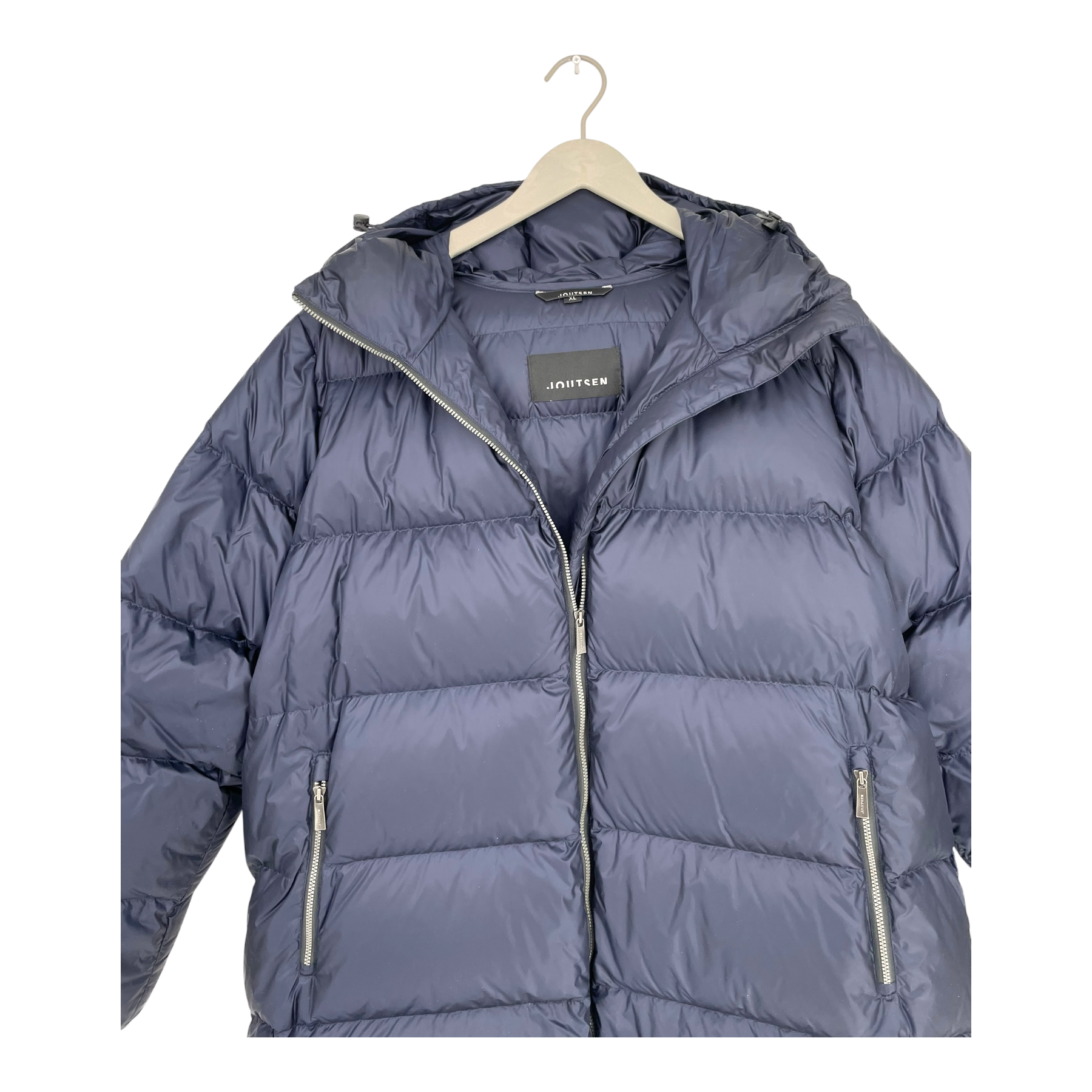 Joutsen Silvia jacket is a down jacket perfect for the colder weathers. There a large horizontal stitching and two front pockets with zippers. The double-slider fastening zipper adds comfortability and daily functionality in the front. There is a large warm adjustable hood that can be worn up or down according to weather and the sleeves can be rolled up for a better fit.