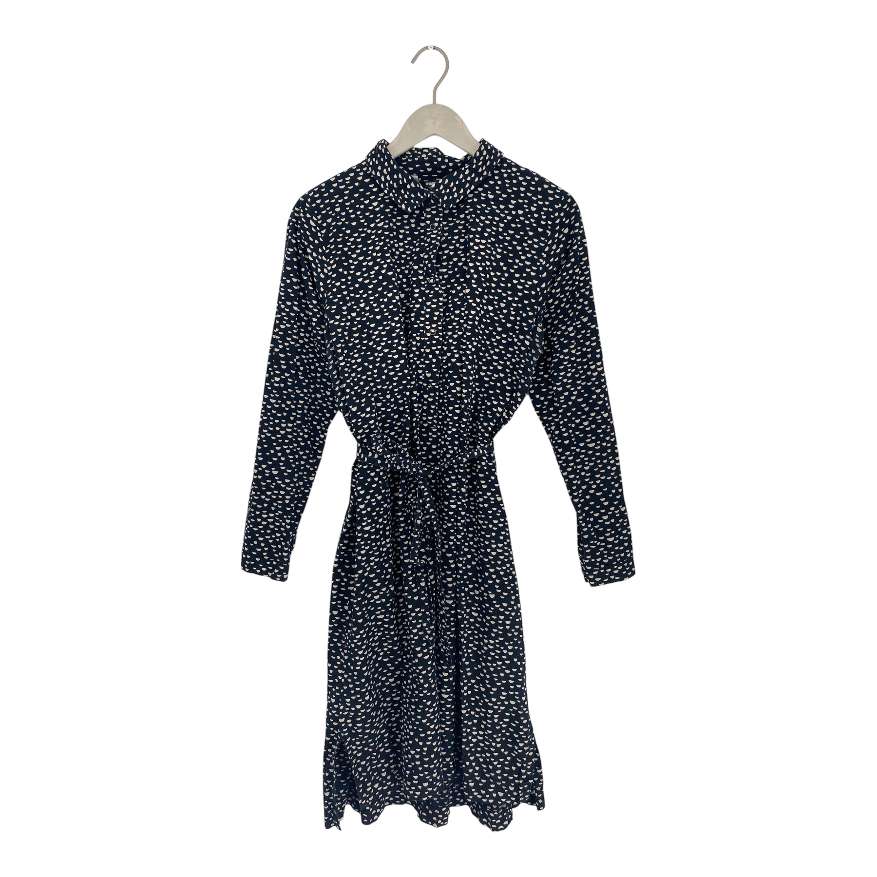 Papu women's long button-up shirt/tunic with collar and a belt. Hidden buttons down the front. Long sleeves with buttons on wrist band.