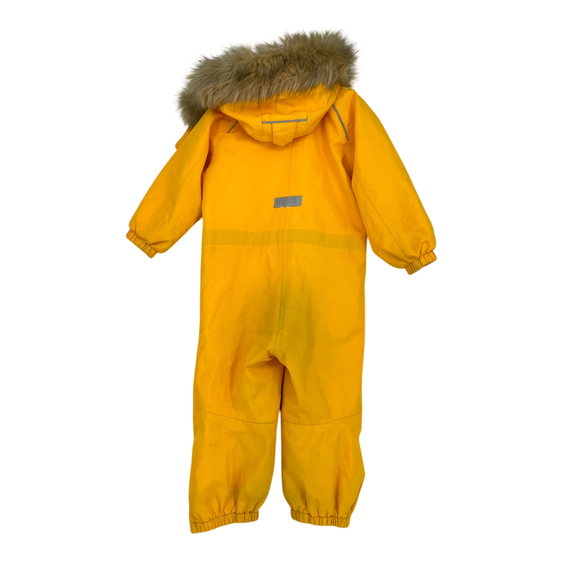 Reima Tromssa winter overall is waterproof and warm, yet breathable. Detachable hood, reflective details and adjustable waist. Foot loops in leg ends.