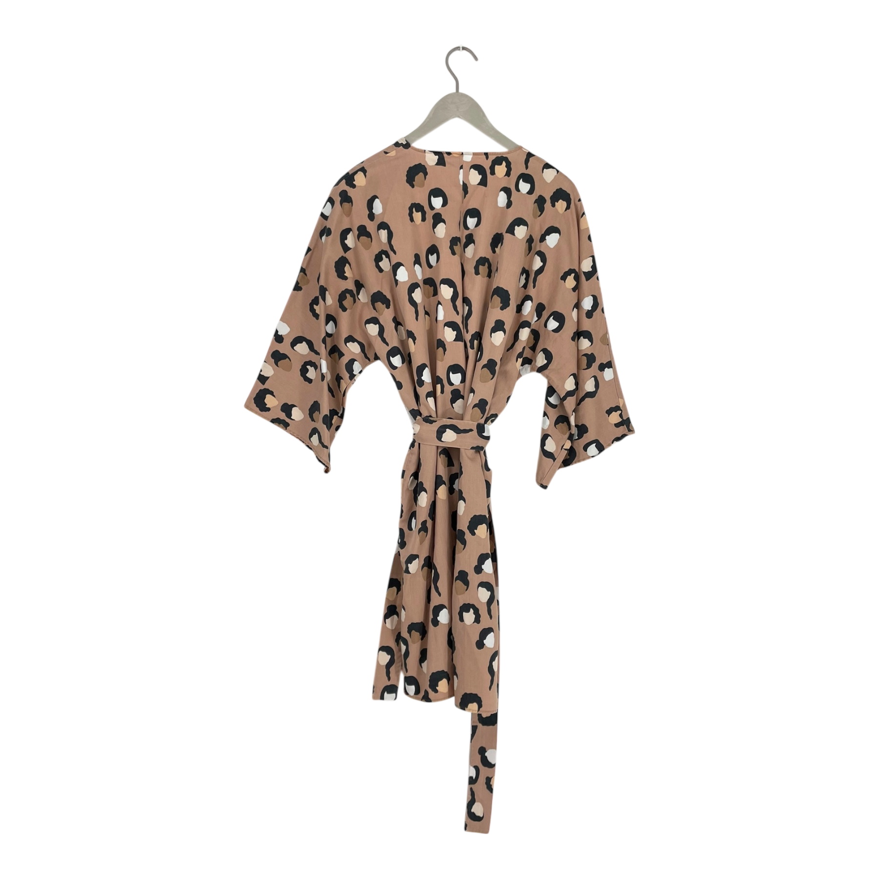 Yo Zen women's kimono dress with a removable belt in a face print. Onesize fits S-L.