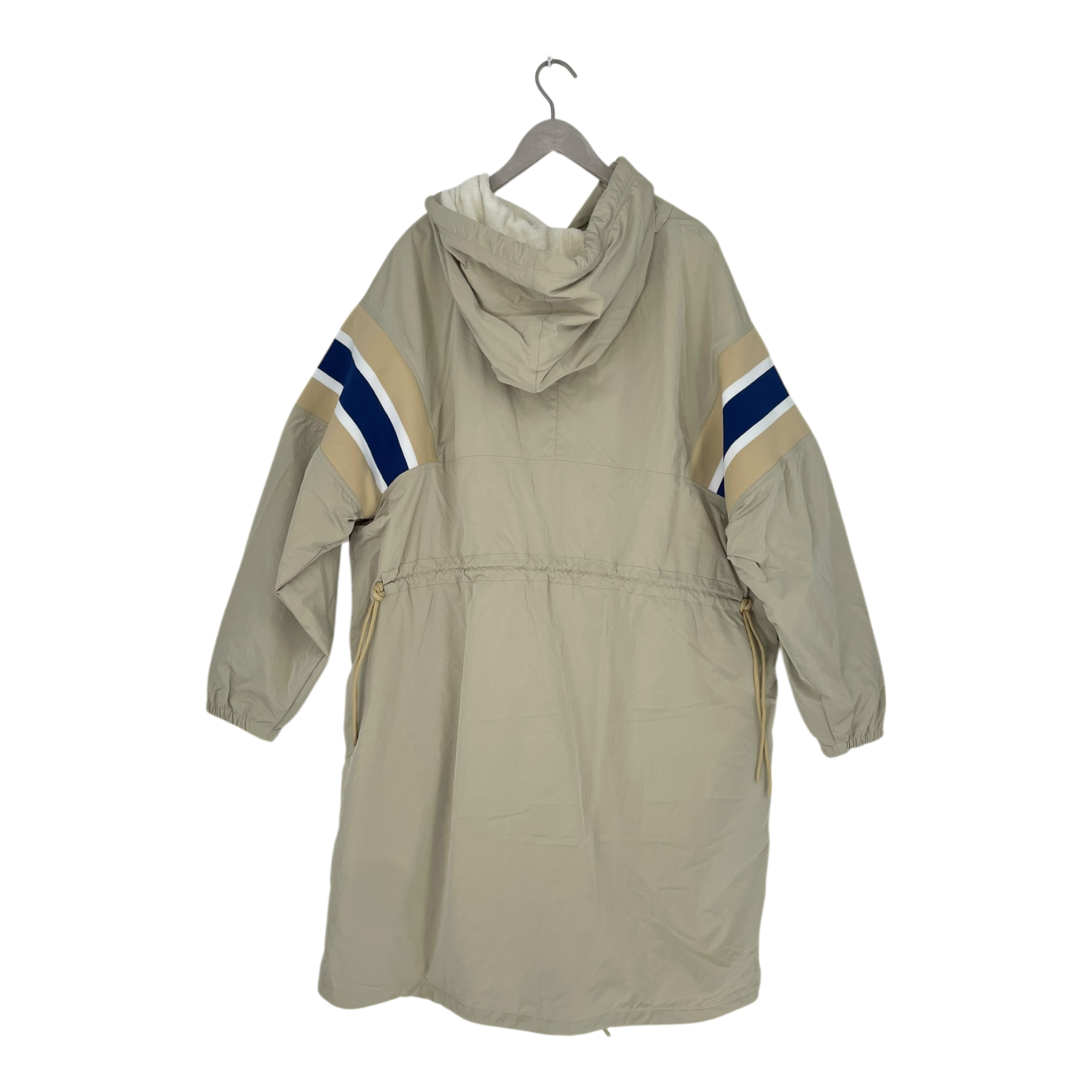 Embassy of Bricks and Logs Covelo sports parka jacket with a throwback style striped rib details in sleeves. Soft terry cloth lining inside the jacket and hood.