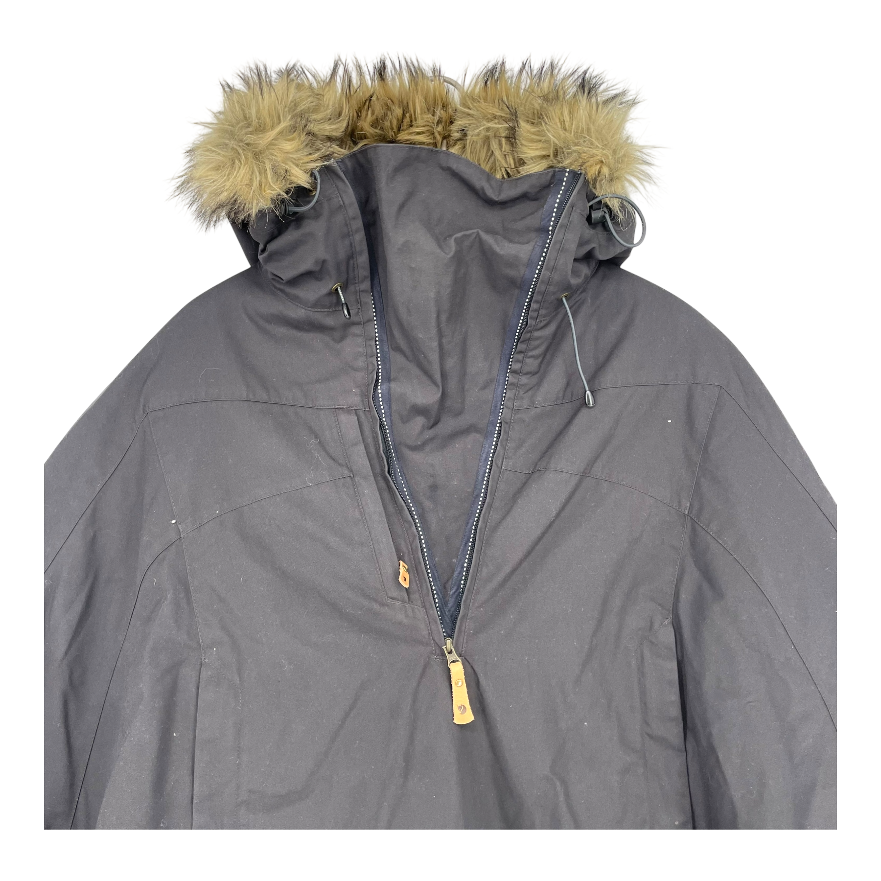 Fjällräven Luhkka is a practical knee-length cape inspired by the versatile and functional Sámi Luhkka. It works just as well as a standalone outer layer in autumn and spring, or as an extra layer over regular winter clothes on the coldest winter days. Worn over standard shell garments, it provides multifunctional protection against frost and cold winds, and snow is easy to shake off when going indoors.