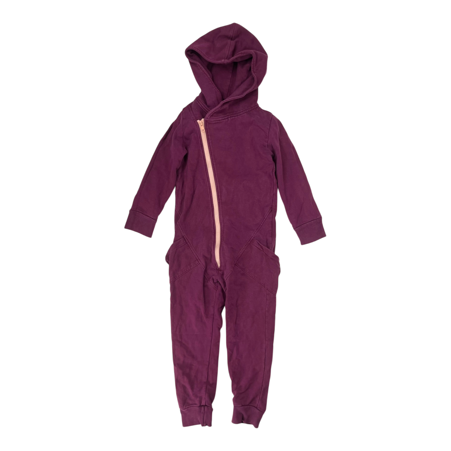 Gugguu jumpsuit with an asymmetrical zipper and two pockets in the front.
