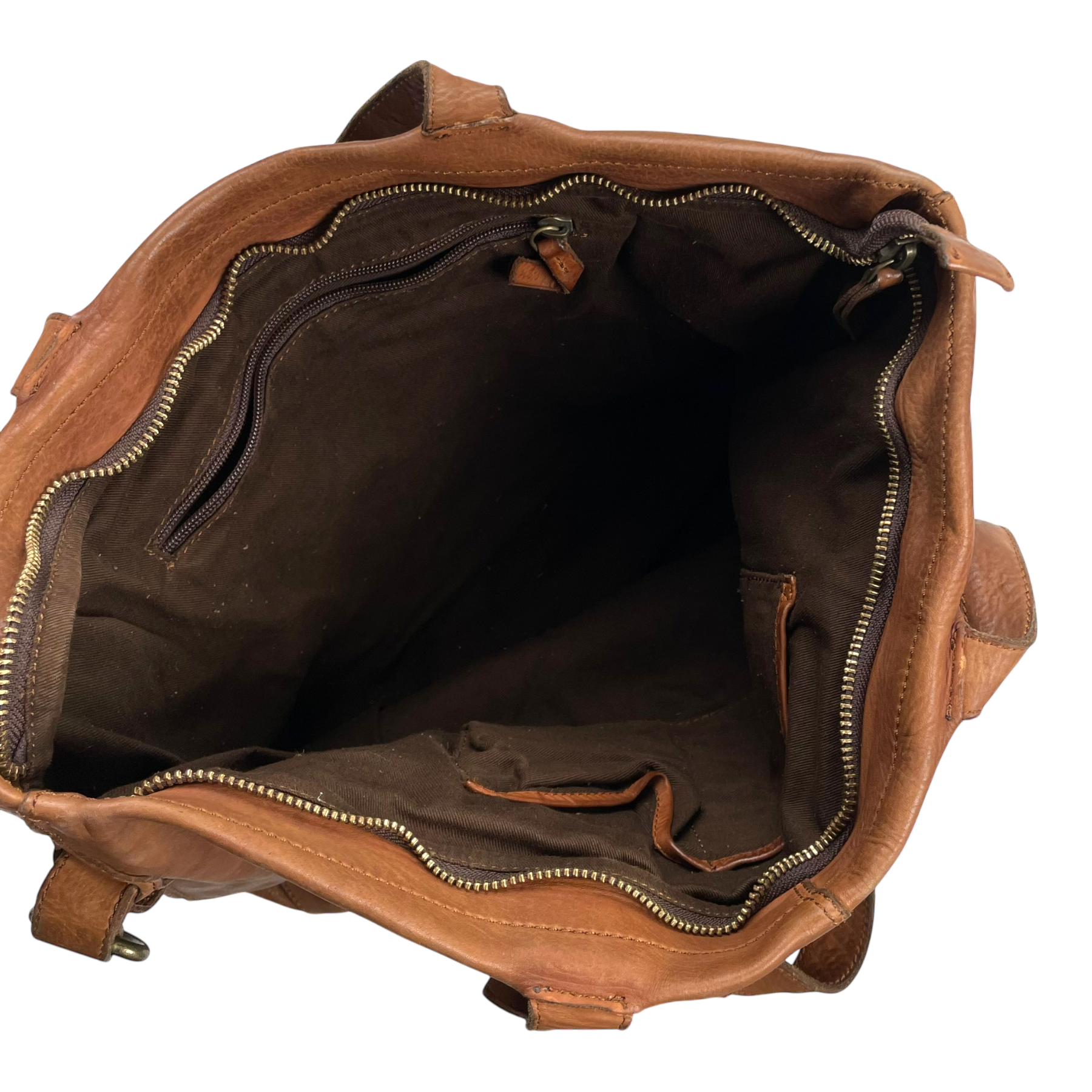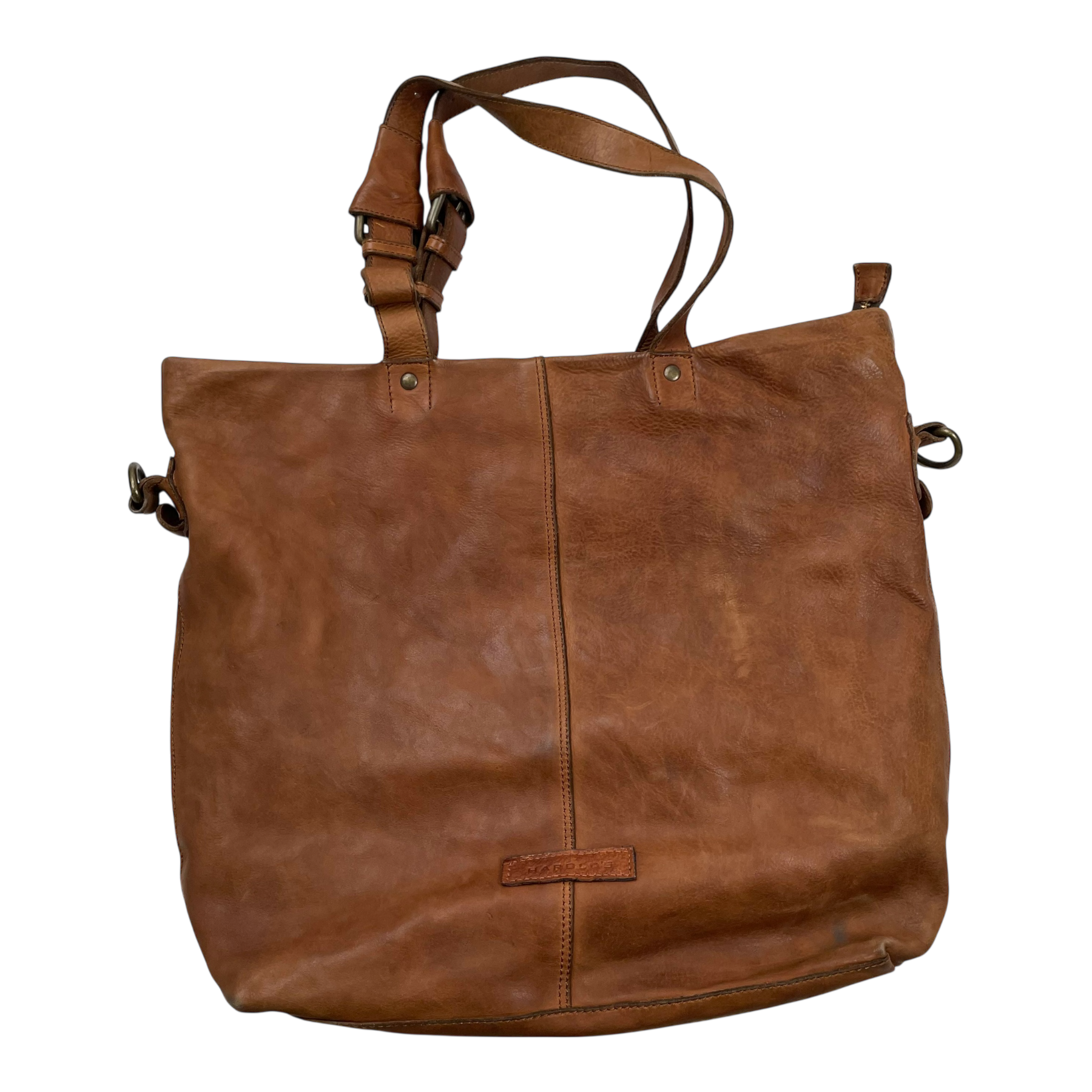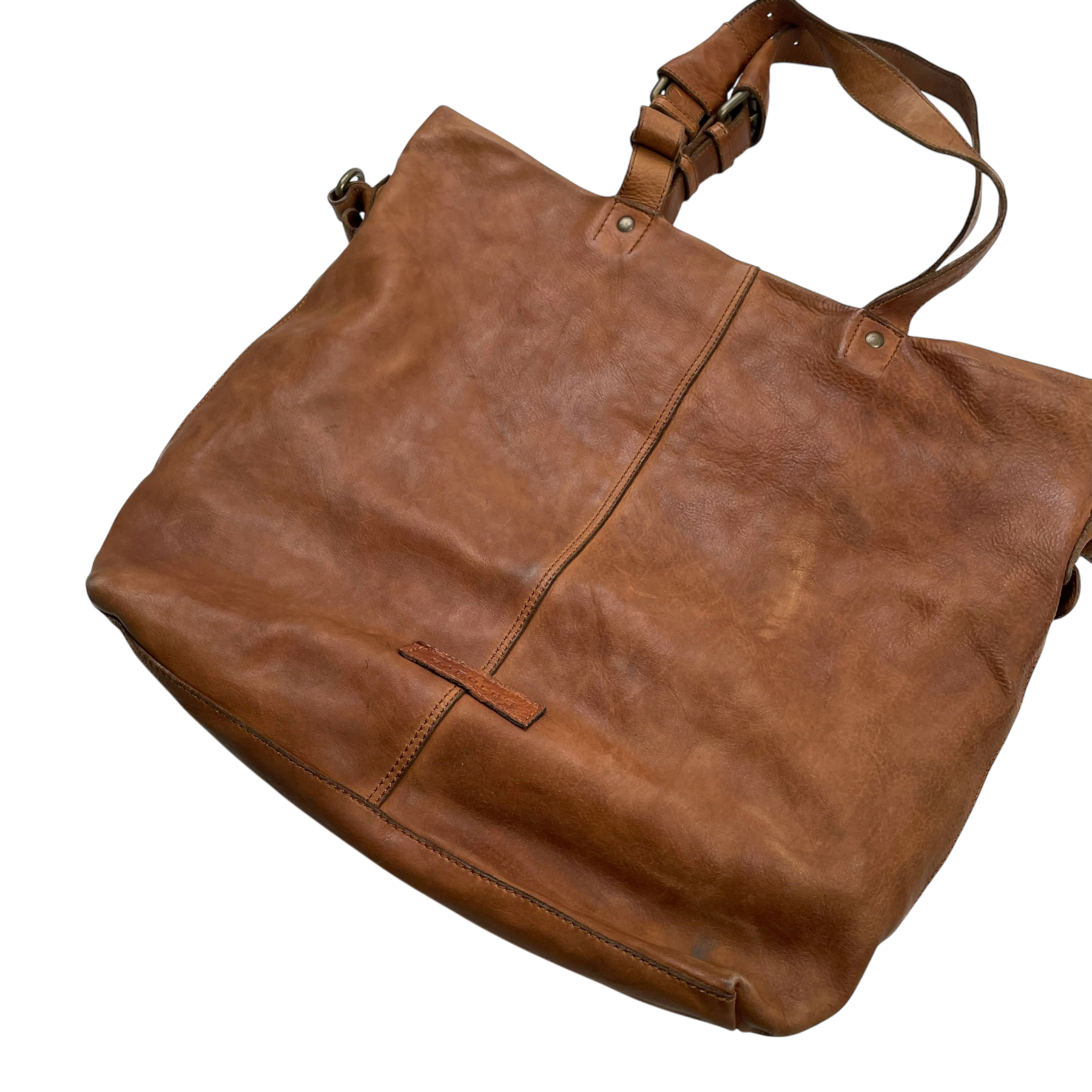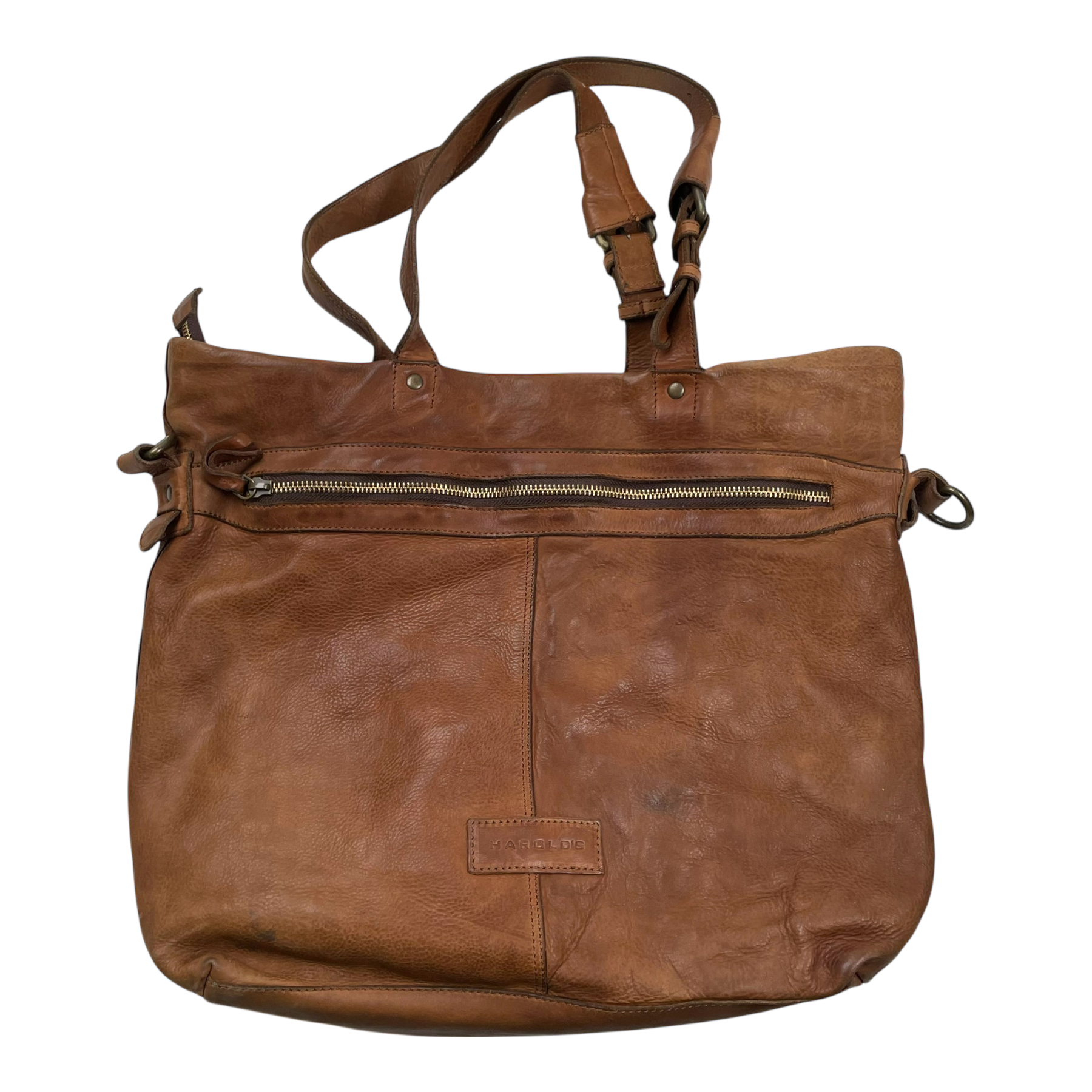 Harold's Bags Submarine Shopper is made of washed cowhide with a slightly glossy surface and a rich feel. The bag is pleasantly scrunchy and surprisingly lightweight. It features a large and spacious zippered compartment. It can be worn just over the shoulder using the short strap or cross-body as a messenger bag using the detachable shoulder strap.