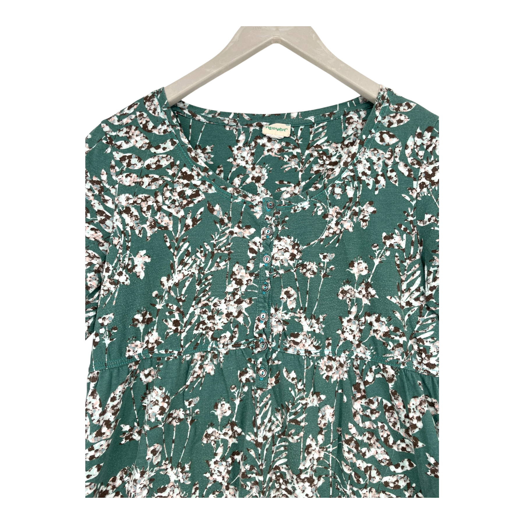 Hessnatur felted women's tunic shirt with buttons on the front. There is pilling on the fabric.