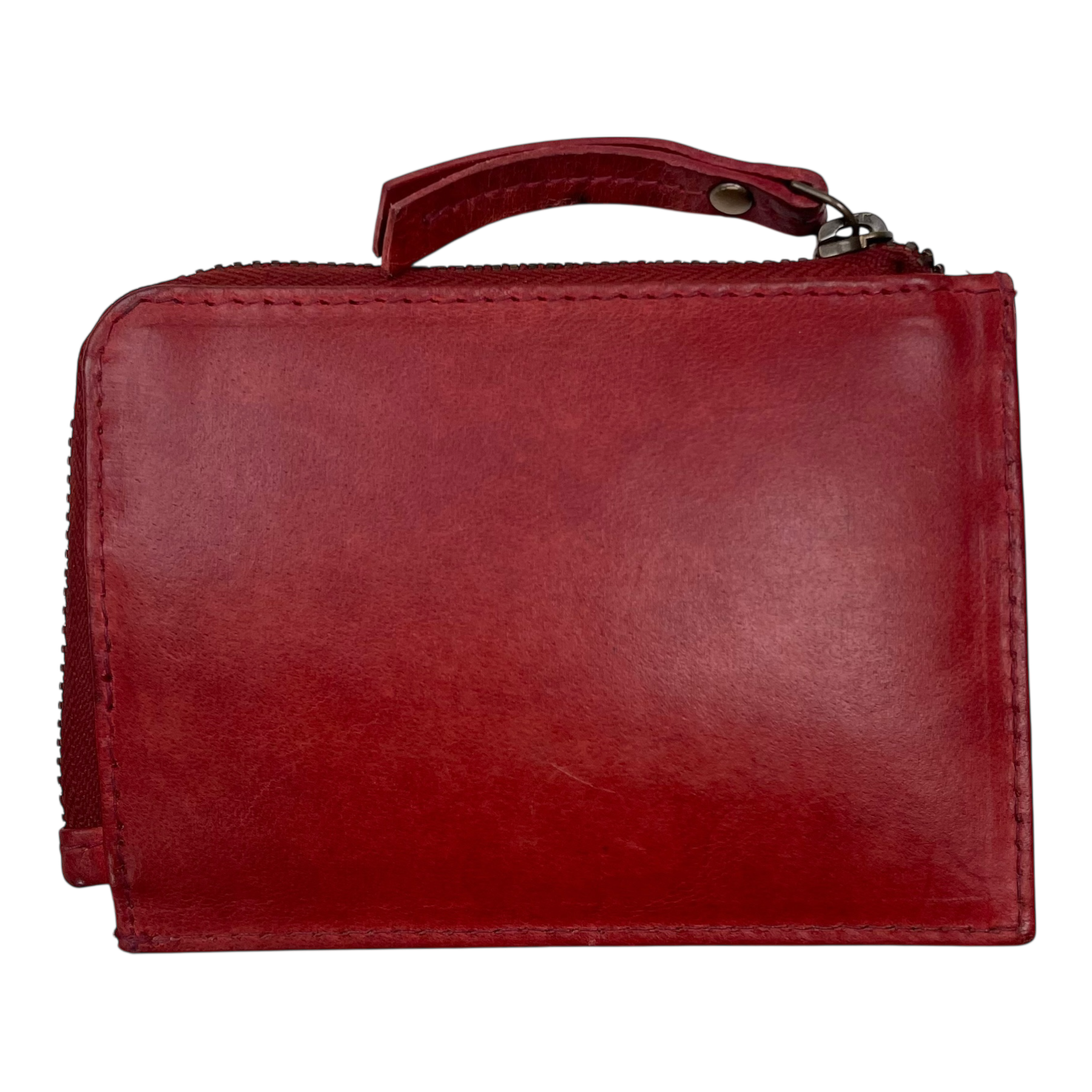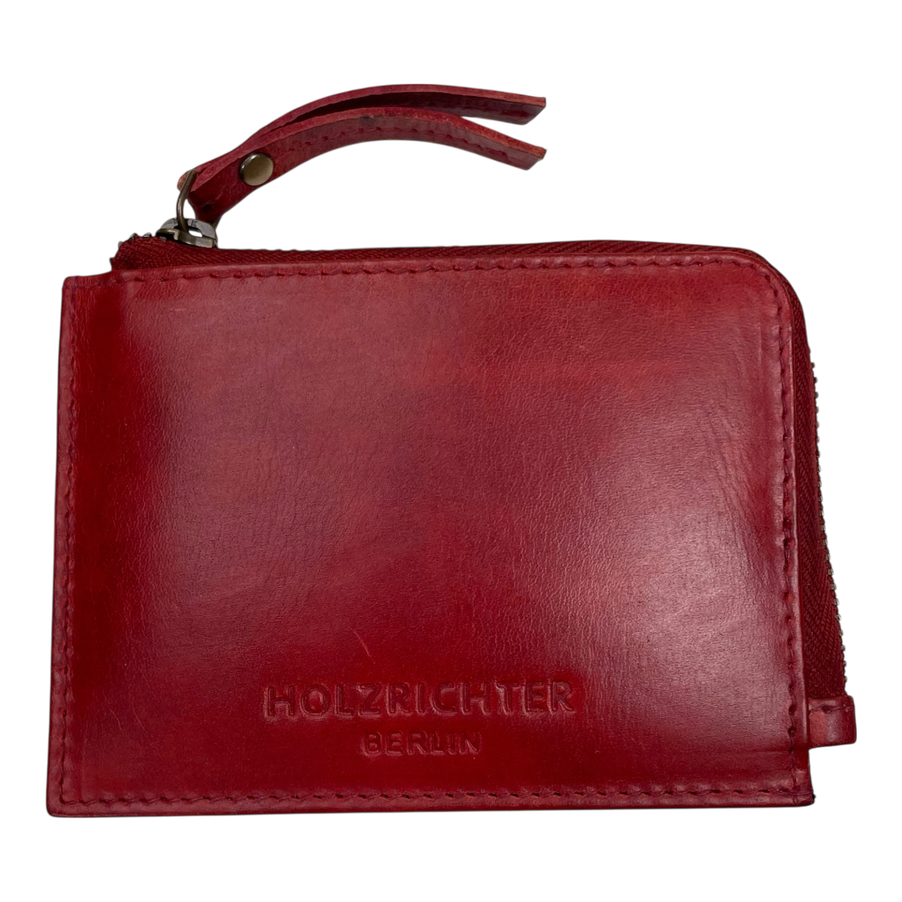 Holzrichter Berlin small leather wallet / card holder / coin purse. Charming in both form and function. Slim design with one zipper compartment and card compartments inside. Fits cards, bills, and coins. There is a key chain and a key ring to attach to your keys.