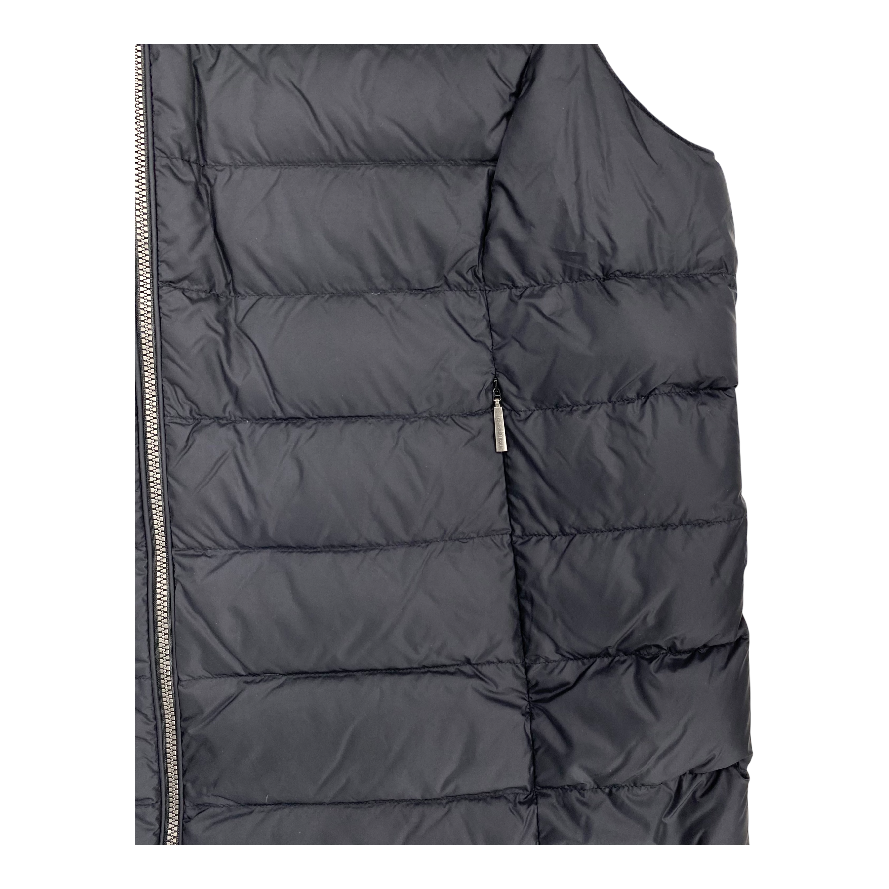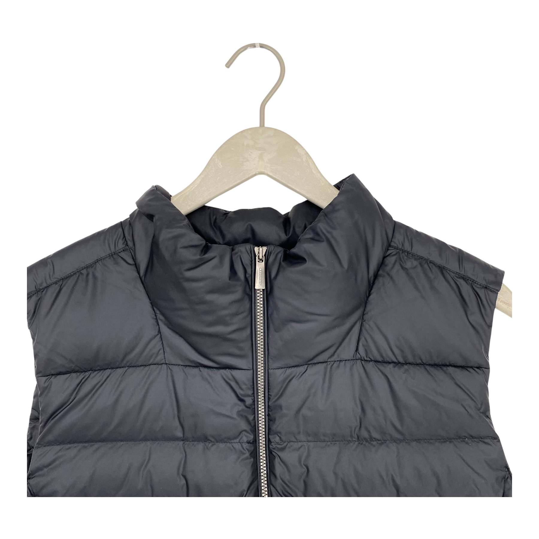 Joutsen lady vest is light and provides lovely extra warmth for both outdoor and indoor use all year around. The vest can be worn over a shirt or used as a warming layer under or over another coat. The princes seams ensure that the vest fits well and the longer hem in the back helps to keep the lower back warm. Front pockets have concealed zippers and double-slider fastening zipper adds comfortability and daily functionality. There is a drawstring on the waistline inside the vest for better fit.