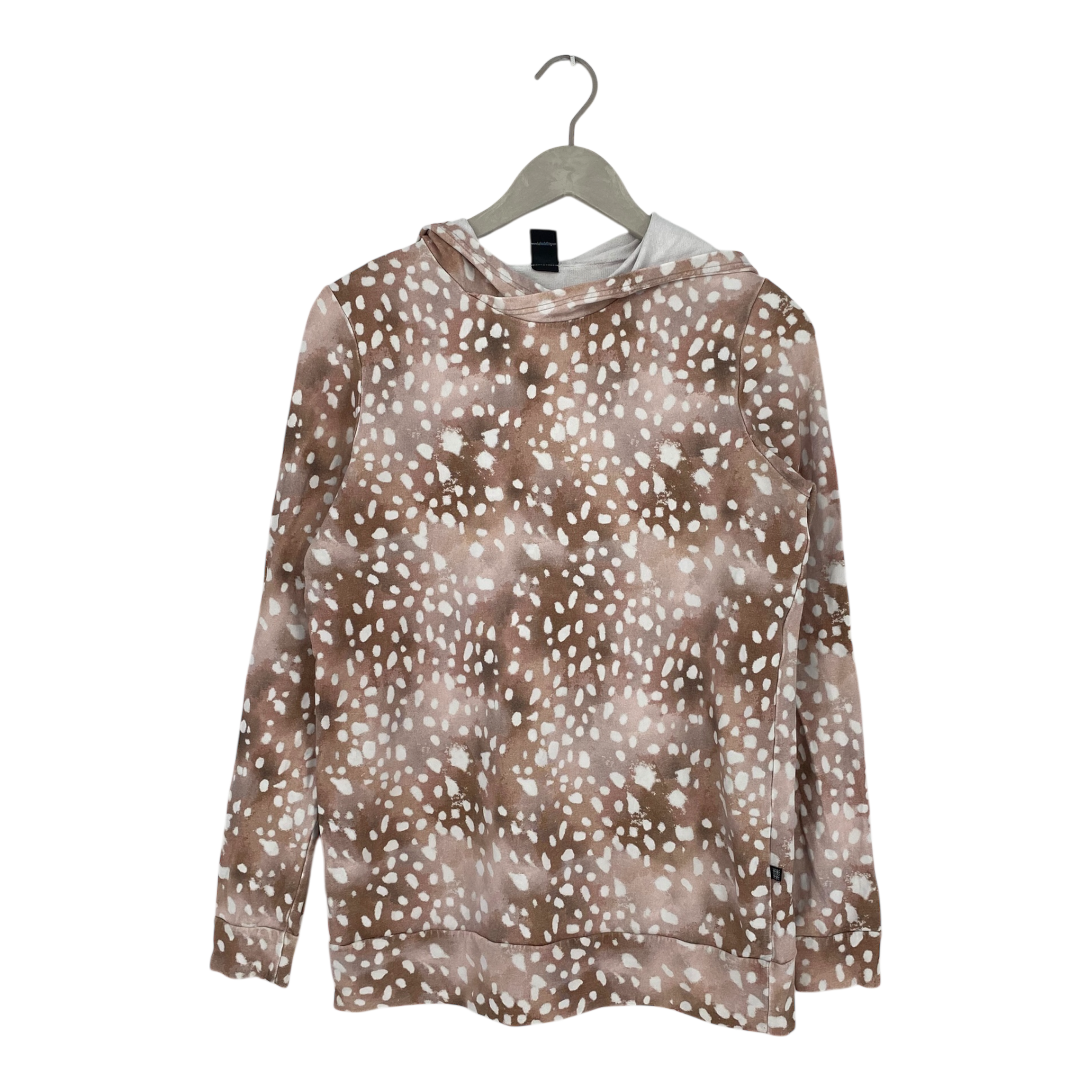 Kaiko women's hooded tricot shirt with a copper bambi print.