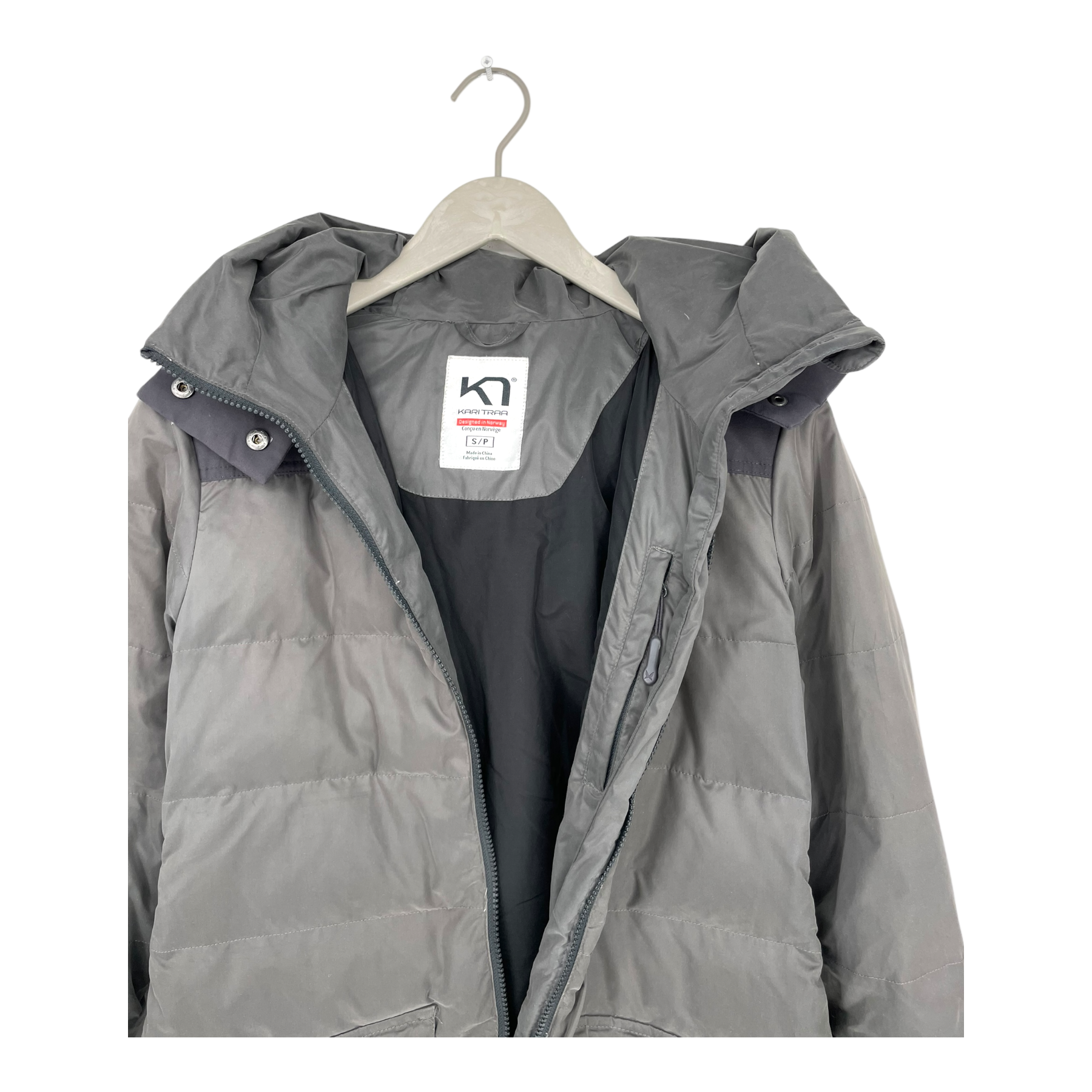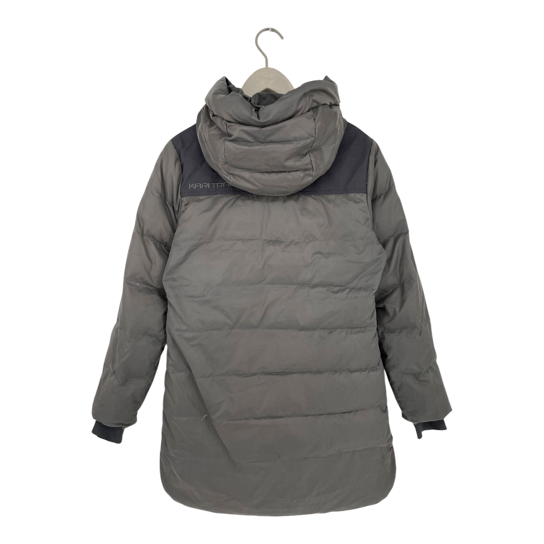 Kari Traa Rothe down parka jacket. Elastic sleeve cuffs and zippers on sides that gice some extra space to hip area. Snap button pockets.