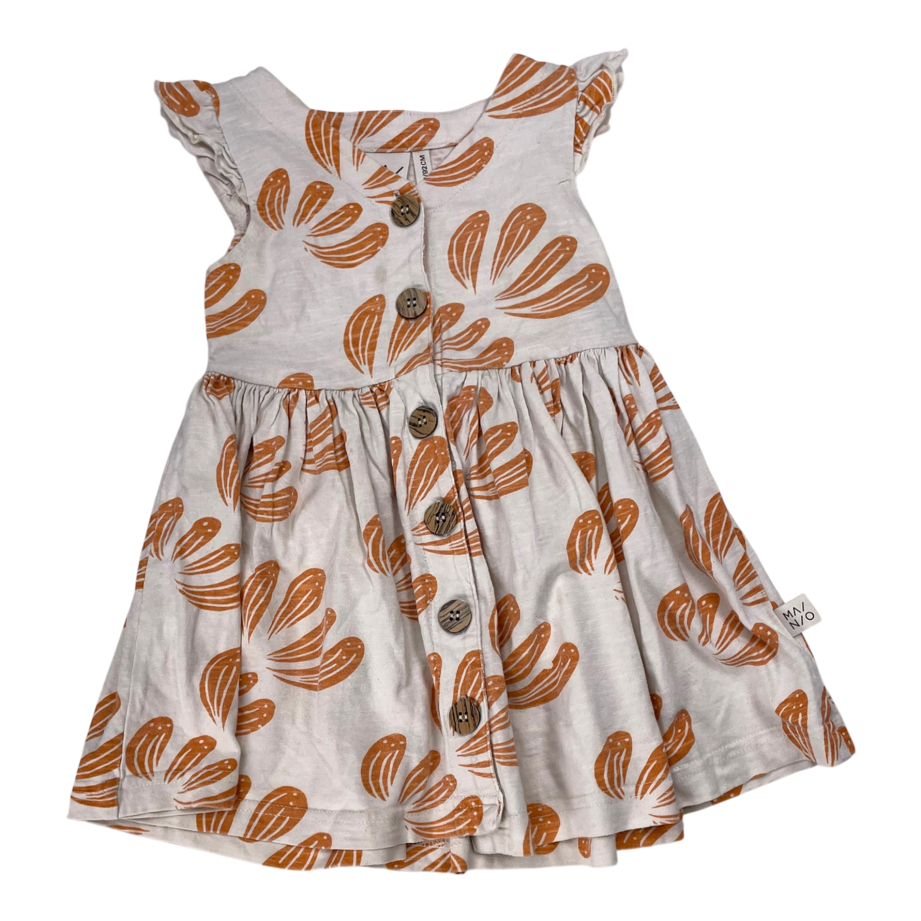 Mainio dress in leaves print. Round neck, has buttons on the front of the dress.